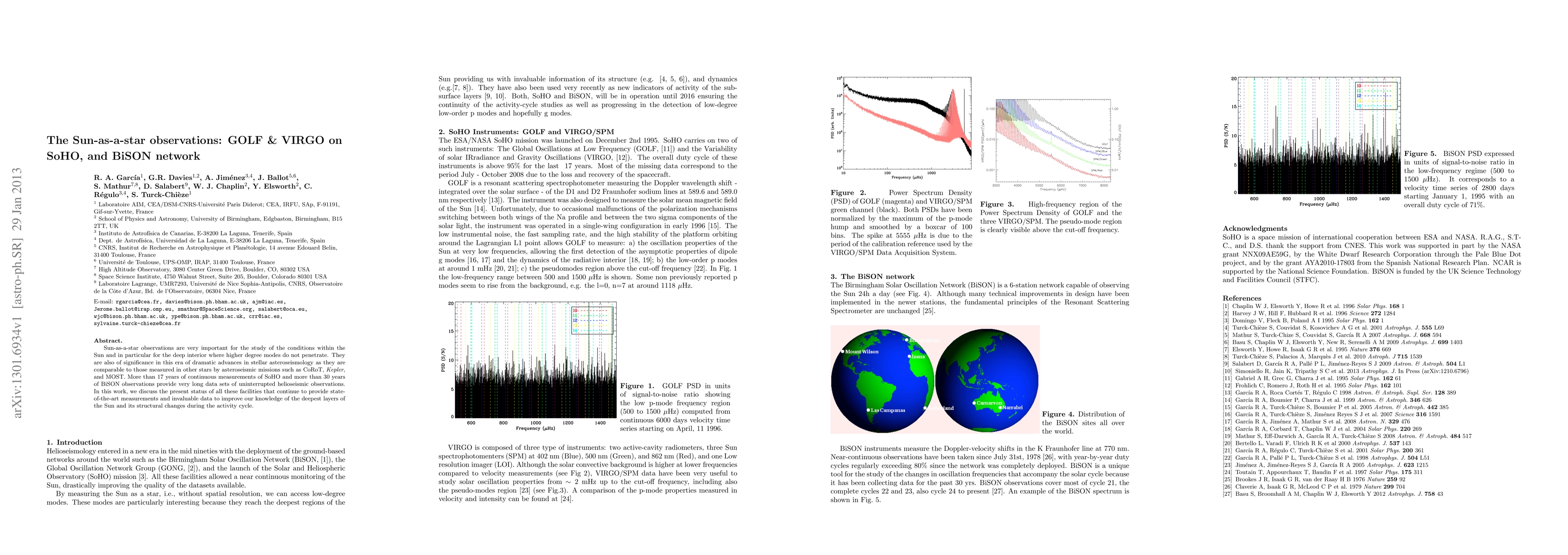 The research presents advancements in helioseismic measurements using GOLF and VIRGO instruments on SoHO and the BiSON network, providing detailed insights into the Sun's deep interior and structural changes.