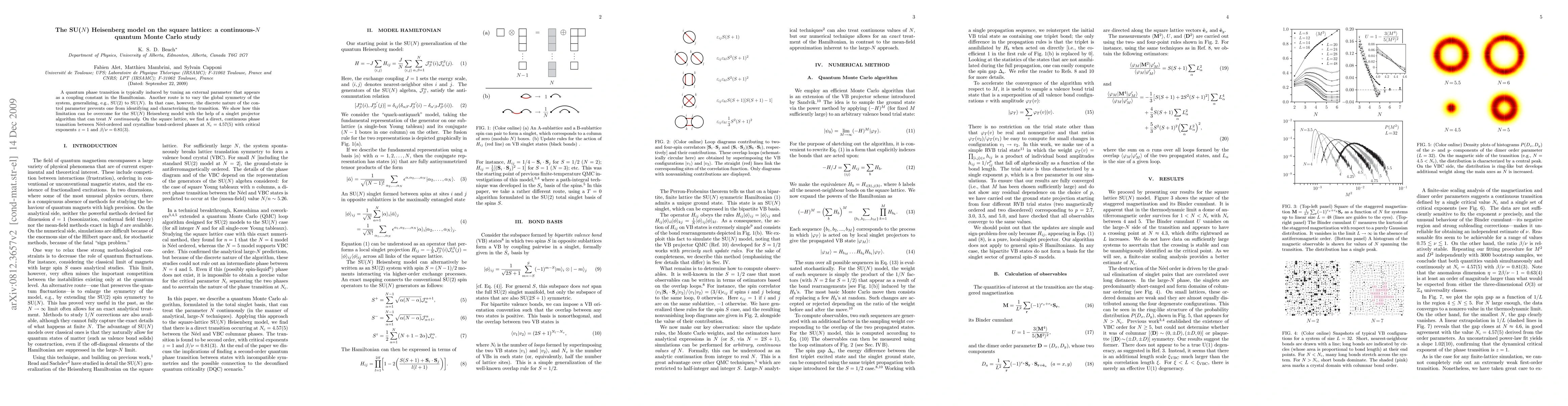 A quantum phase transition is typically induced by tuning an external parameter that appears as a coupling constant in the Hamiltonian. Another route is to vary the global symmetry of the system, generalizing, e.g., SU(2) to SU(N). In that case, however, the discrete nature of the control parameter prevents one from identifying and characterizing the transition. We show how this limitation can be overcome for the SU(N) Heisenberg model with the help of a singlet projector algorithm that can treat N continuously. On the square lattice, we find a direct, continuous phase transition between Neel-ordered and crystalline bond-ordered phases at Nc=4.57(5) with critical exponents z=1 and beta/nu=0.81(3).