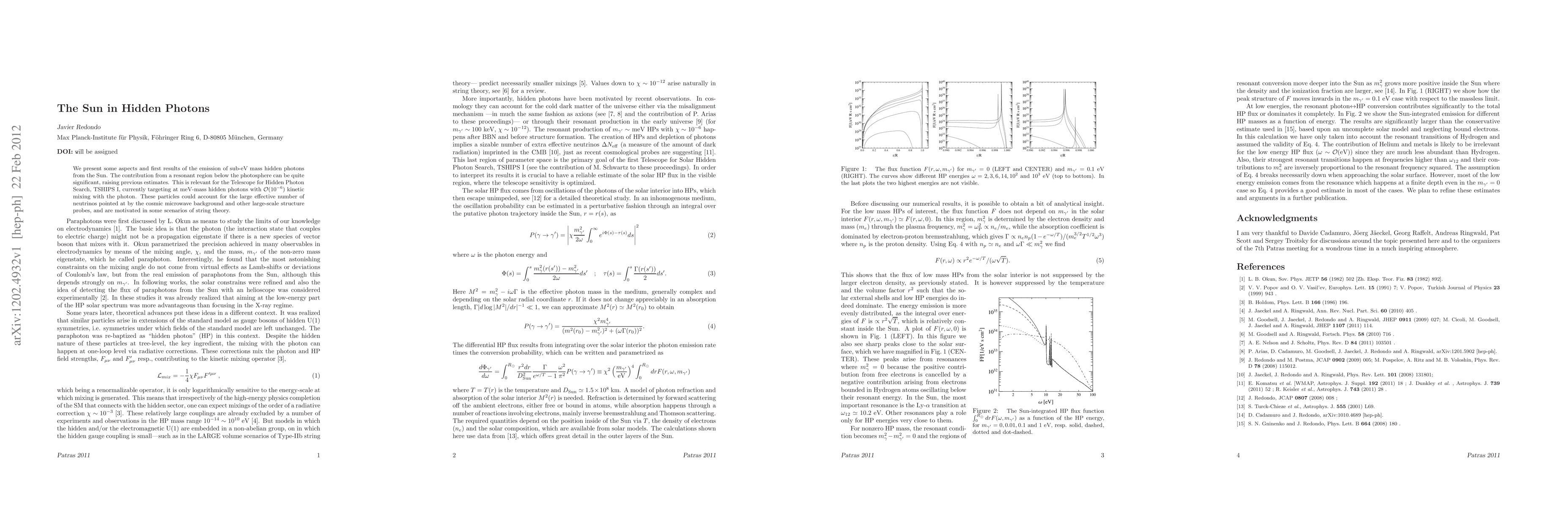 We present some aspects and first results of the emission of sub-eV mass hidden photons from the Sun. The contribution from a resonant region below the photosphere can be quite significant, raising previous estimates. This is relevant for the Telescope for Hidden Photon Search, TSHIPS I, currently targeting at meV-mass hidden photons with O(10^-6) kinetic mixing with the photon. These particles could account for the large effective number of neutrinos pointed at by the cosmic microwave background and other large-scale structure probes, and are motivated in some scenarios of string theory.