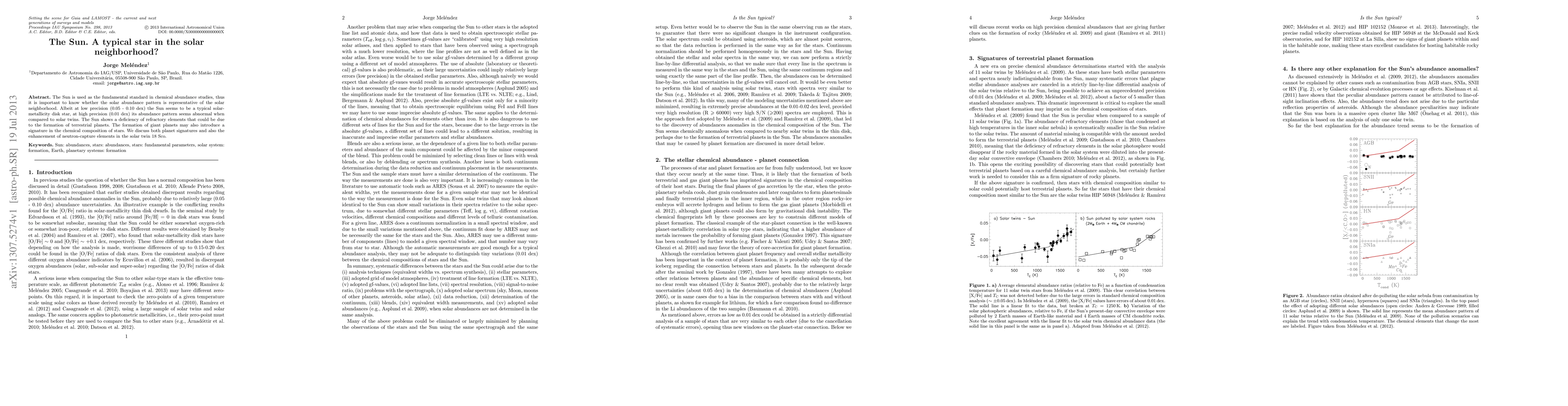 The Sun is used as the fundamental standard in chemical abundance studies, thus it is important to know whether the solar abundance pattern is representative of the solar neighborhood. Albeit at low precision (0.05 - 0.10 dex) the Sun seems to be a typical solar-metallicity disk star, at high precision (0.01 dex) its abundance pattern seems abnormal when compared to solar twins. The Sun shows a deficiency of refractory elements that could be due to the formation of terrestrial planets. The formation of giant planets may also introduce a signature in the chemical composition of stars. We discuss both planet signatures and also the enhancement of neutron-capture elements in the solar twin 18 Sco.