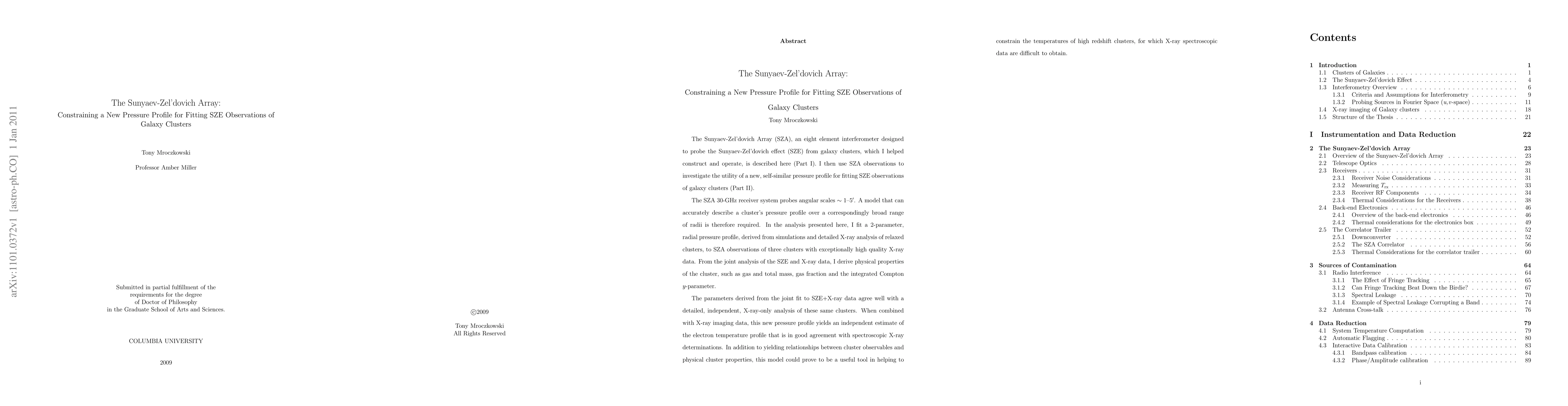 This paper describes the Sunyaev-Zel'dovich Array (SZA) and uses its observations to test a new self-similar pressure profile for galaxy clusters. The new model fits SZA and high-quality X-ray data, yielding accurate physical properties and electron temperature profiles, and could help constrain temperatures in high redshift clusters.