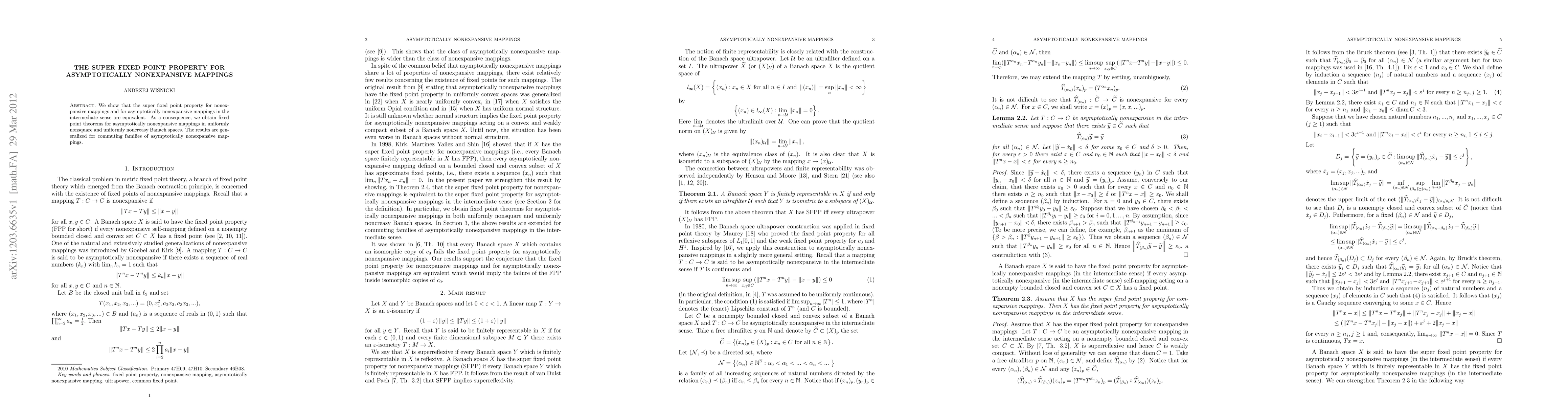This paper demonstrates the equivalence of the super fixed point property for nonexpansive and asymptotically nonexpansive mappings. It derives fixed point theorems for such mappings in specific Banach spaces and extends the results to commuting families.