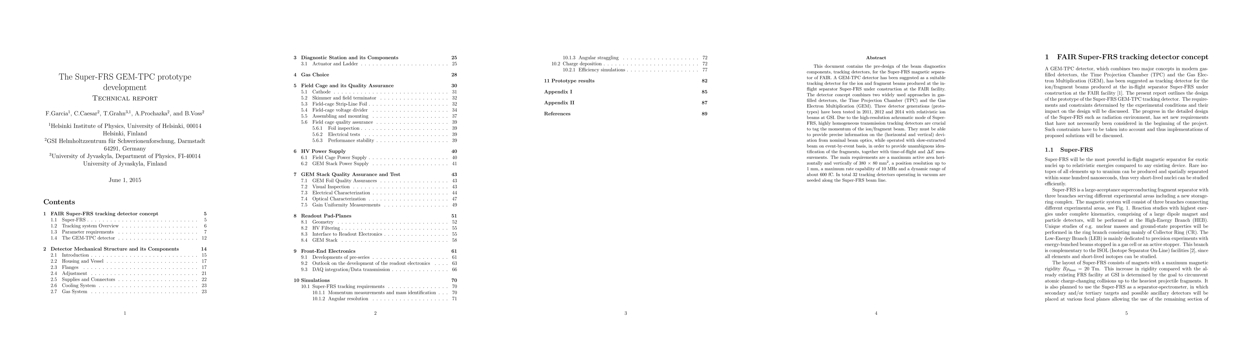 This document contains the pre-design of the beam diagnostics components Tracking Detectors for the Super-FRS. A GEM-TPC detector has been suggested as suitable tracking detector for the ion/fragment beams produced at the in-flight separator Super-FRS under construction at the FAIR facility. The detector concept combines two widely used approaches in gas filled detectors, the Time Projection Chamber (TPC) and the Gas Electron Multiplication (GEM). Three detector generations (prototypes) have been tested in 2011, 2012 and 2014 with relativistic ion beams at GSI. Due to the high-resolution achromatic mode of the Super-FRS, highly homogeneous transmission tracking detectors are crucial to tag the momentum of the ion/fragment beam. They must be able to provide precise information on the (horizontal and vertical) deviation from nominal beam optics, while operated with slow-extracted beam on event-by event basis, in order to provide unambiguous identification of the fragments. The main requirements are a maximum active area horizontally and vertically of (380x80) mm2, a position resolution of < 1 mm, a maximum rate capability of 1 MHz, a dynamic range of about 600 fC. About 32 tracking detectors operating in vacuum are needed along the Super-FRS beam line.