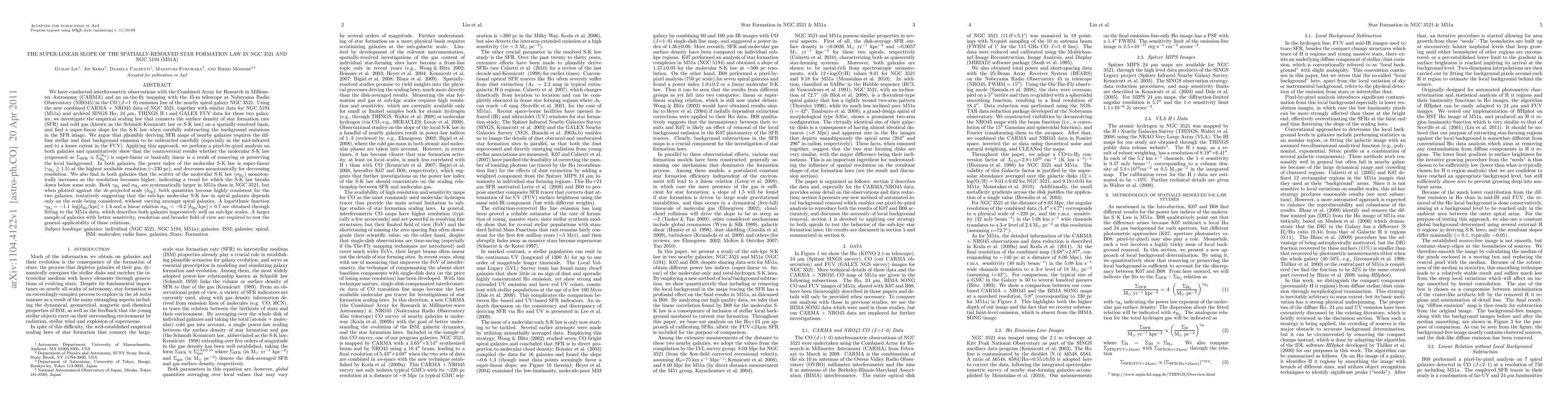 We have conducted interferometric observations with CARMA and an OTF mapping with the 45-m telescope at NRO in the CO (J=1-0) emission line of NGC 3521. Combining these new data, together with CARMA+NRO45 data for M51a and archival SINGS H$\alpha$, 24$\mu$m, THINGS H I and GALEX FUV data for both galaxies, we investigate the empirical scaling law that connects the surface density of SFR and cold gas (the Schmidt-Kennicutt law) on a spatially-resolved basis. We argue that plausibly deriving SFR maps of nearby galaxies requires the diffuse stellar/dust background emission to be carefully subtracted. An approach to complete this task is presented and applied in our pixel-by-pixel analysis on both galaxies, showing that the controversial results whether the molecular S-K law is super-linear or basically linear is a result of removing or preserving the local background. In both galaxies, the power index of the molecular S-K law is 1.5-1.9 at the highest available resolution (230 pc), and decreases monotonically for decreasing resolution; while the scatter (mainly intrinsic) increases as the resolution becomes higher, indicating a trend for which the S-K law breaks down below some scale. Both quantities are systematically larger in M51a than in NGC 3521, but when plotted against the de-projected scale (\delta_{dp}), they become highly consistent between the two galaxies, tentatively suggesting that the sub-kpc molecular S-K law in spiral galaxies depends only on the considered scale, without varying amongst spiral galaxies. A logarithmic function \gamma_{H_2}=-1.1 log[\delta_{dp}/kpc]+1.4 and a linear relation \sigma_{H_2}=-0.2 [\delta_{dp}/kpc]+0.7 are obtained through fitting to the M51a data, which describes both galaxies impressively well on sub-kpc scales. A larger sample of galaxies with better quality data are required to test the general applicability of these relations.