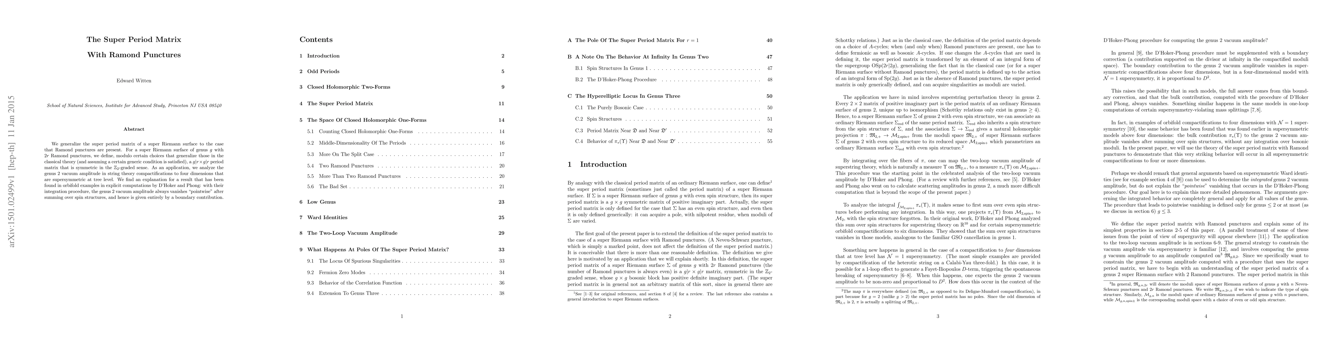 This paper generalizes the super period matrix for super Riemann surfaces with Ramond punctures, defining a symmetric g|r x g|r matrix. It applies this to genus 2 vacuum amplitudes in supersymmetric string theory compactifications, showing that these amplitudes vanish pointwise after summing over spin structures, indicating a boundary contribution.