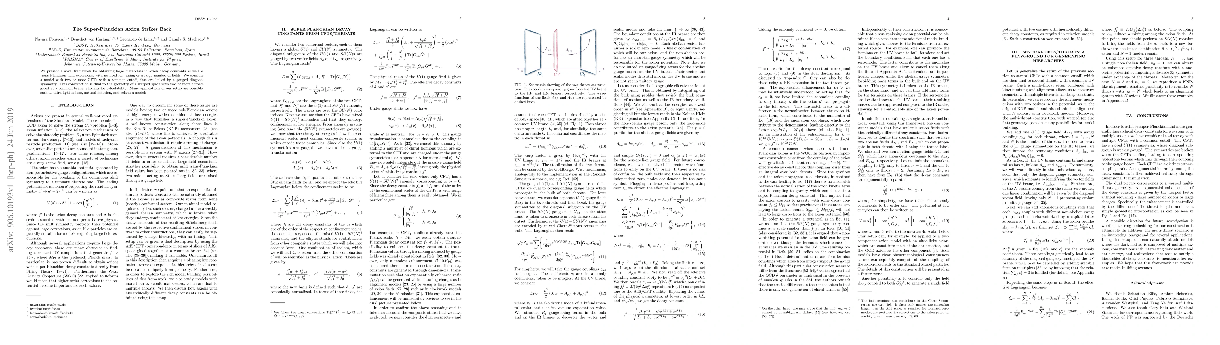 We present a novel framework for obtaining large hierarchies in axion decay constants as well as trans-Planckian field excursions, with no need for tuning or a large number of fields. We consider a model with two or more CFTs with a common cutoff, that are linked by a gauged diagonal symmetry. This construction is dual to the geometry of a warped space with two or more throats glued at a common brane, allowing for calculability. Many applications of our setup are possible,such as ultra-light axions, natural inflation, and relaxion models.