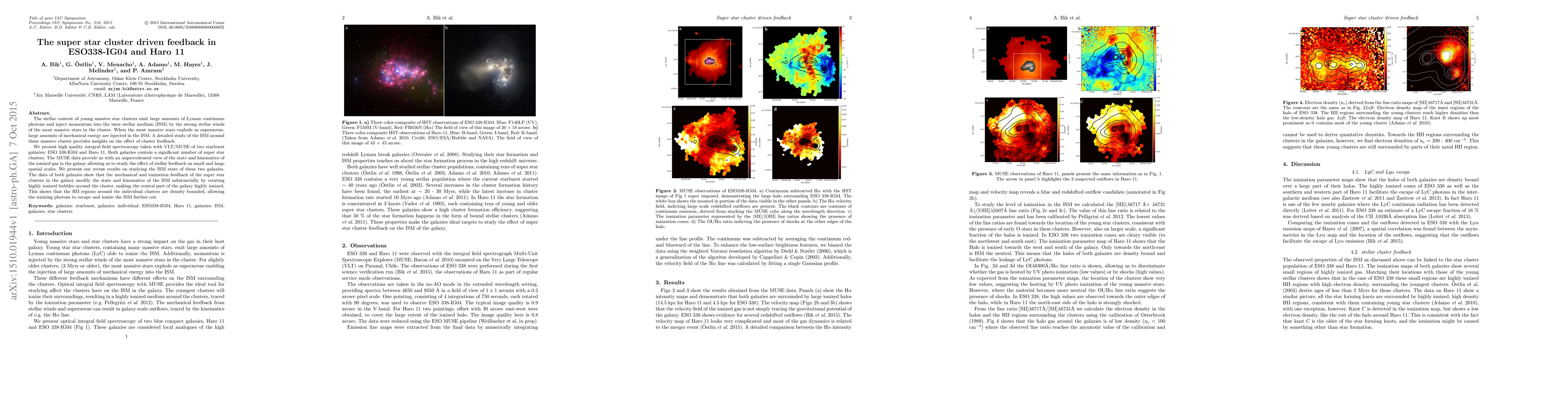 The stellar content of young massive star clusters emit large amounts of Lyman continuum photons and inject momentum into the inter stellar medium (ISM) by the strong stellar winds of the most massive stars in the cluster. When the most massive stars explode as supernovae, large amounts of mechanical energy are injected in the ISM. A detailed study of the ISM around these massive cluster provides insights on the effect of cluster feedback. We present high quality integral field spectroscopy taken with VLT/MUSE of two starburst galaxies: ESO 338-IG04 and Haro 11. Both galaxies contain a significant number of super star clusters. The MUSE data provide us with an unprecedented view of the state and kinematics of the ionized gas in the galaxy allowing us to study the effect of stellar feedback on small and large spatial scales. We present our recent results on studying the ISM state of these two galaxies. The data of both galaxies show that the mechanical and ionization feedback of the super star clusters in the galaxy modify the state and kinematics of the ISM substancially by creating highly ionized bubbles around the cluster, making the central part of the galaxy highly ionized. This shows that the HII regions around the individual clusters are density bounded, allowing the ionizing photons to escape and ionize the ISM further out.