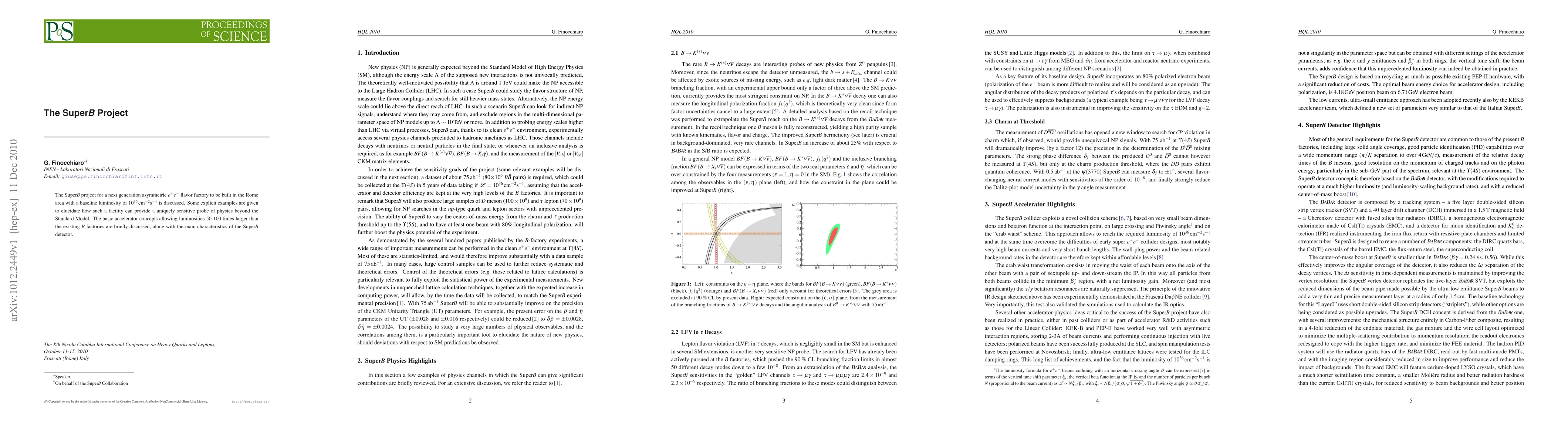 The SuperB project aims to construct a next-generation asymmetric e+e- collider in Rome with significantly higher luminosity than existing B factories, offering a unique probe for exploring physics beyond the Standard Model. The design includes advanced accelerator concepts and a specialized detector to achieve these goals.