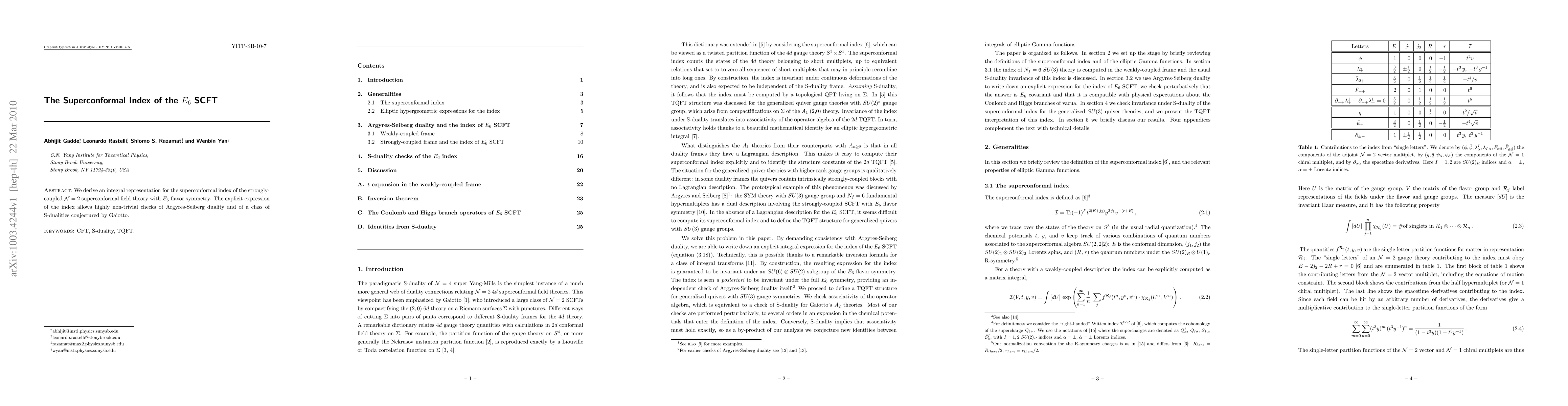 The research provides an integral representation for the superconformal index of N=2 SCFT with E_6 flavor symmetry, enabling significant verifications of Argyres-Seiberg duality and Gaiotto's S-duality conjectures. This work enhances understanding of strongly-coupled field theories.