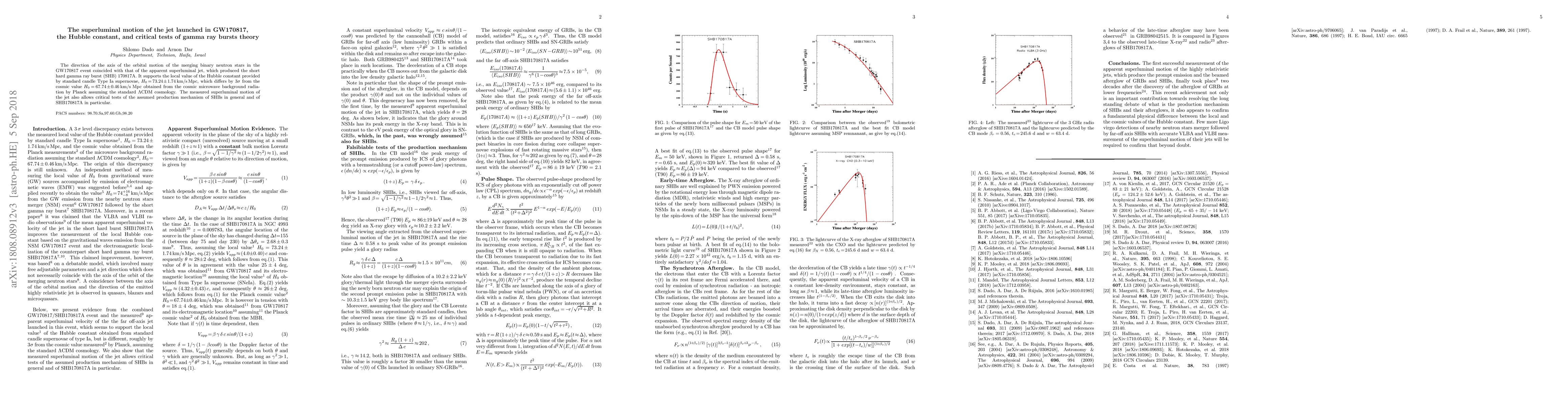 The direction of the axis of the orbital motion of the merging binary neutron stars in the GW170817 event coincided with that of the apparent superluminal jet, which produced the short hard gamma ray burst (SHB) 170817A, if the local value of the Hubble constant is that provided by standard candle Type Ia supernovae, H_0=73.24 +/- 1.74 km/s Mpc. This value differs by 3 sigma from the cosmic value H_0=67.74 +/- 0.46 km/s Mpc obtained from the cosmic microwave background radiation by Planck assuming the standard Lambda-CDM cosmology. The measured superluminal motion of the jet also allows critical tests of the assumed production mechanism of SHBs in general and of SHB170817A in particular.