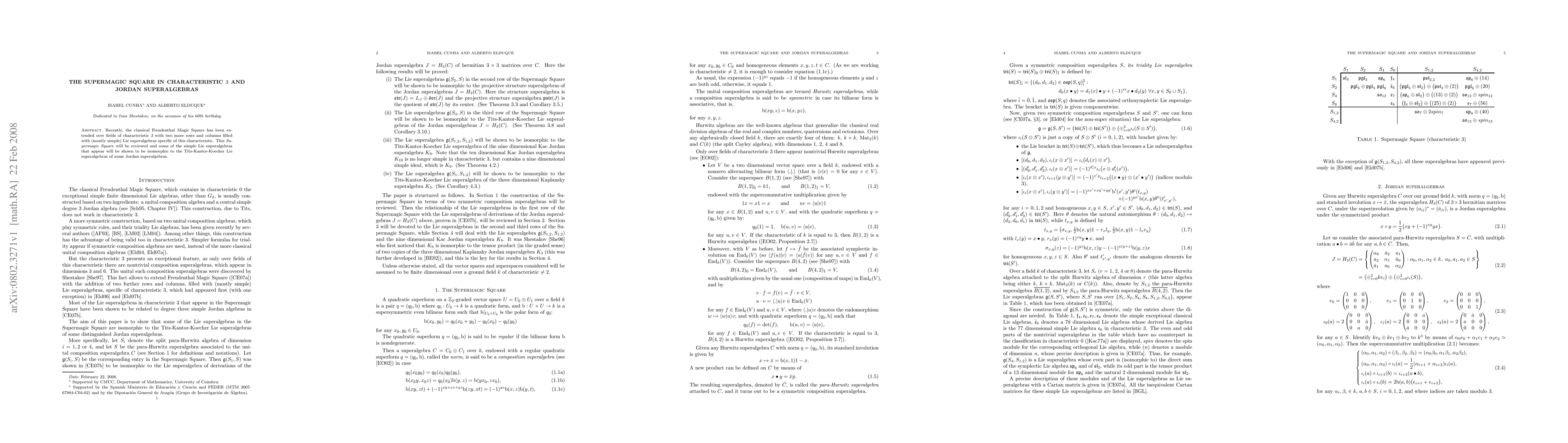 Summary: The paper reviews the extended Freudenthal Magic Square in characteristic 3, incorporating additional rows and columns of simple Lie superalgebras, and demonstrates their isomorphism to Tits-Kantor-Koecher Lie superalgebras of certain Jordan superalgebras.