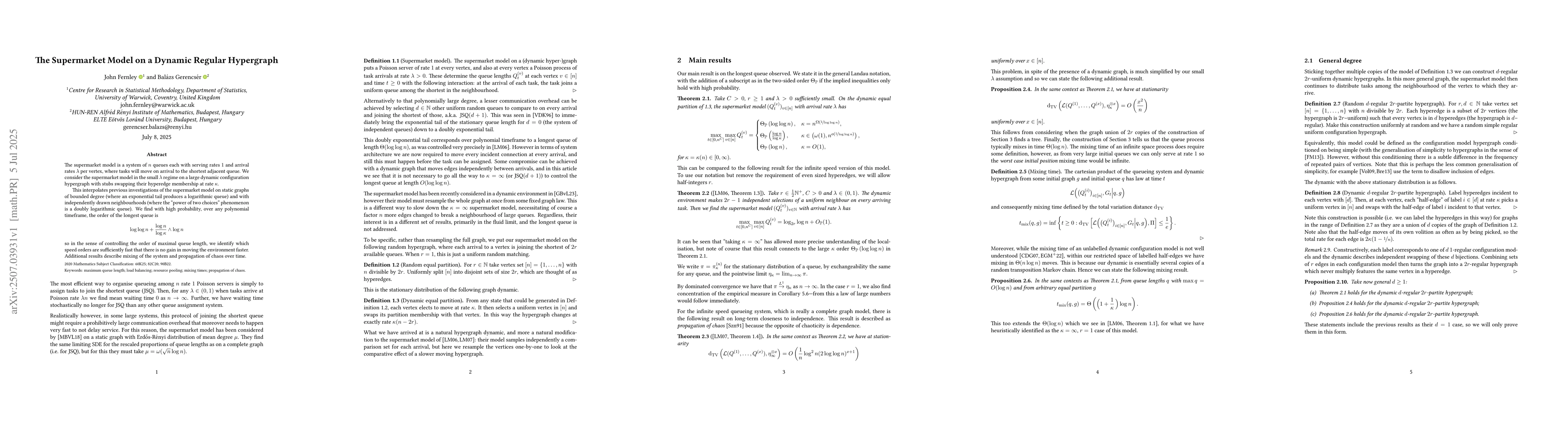 The supermarket model is a system of $n$ queues each with serving rates $1$ and arrival rates $\lambda$ per vertex, where tasks will move on arrival to the shortest adjacent queue. We consider the supermarket model in the small $\lambda$ regime on a large dynamic configuration hypergraph with stubs swapping their hyperedge membership at rate $\kappa$. This interpolates previous investigations of the supermarket model on static graphs of bounded degree (where an exponential tail produces a logarithmic queue) and with independently drawn neighbourhoods (where the ``power of two choices'' phenomenon is a doubly logarithmic queue). We find with high probability, over any polynomial timeframe, the order of the longest queue is \[ \log\log n + \frac{\log n}{\log \kappa} \wedge \log n \] so in the sense of controlling the order of maximal queue length, we identify which speed orders are sufficiently fast that there is no gain in moving the environment faster. Additional results describe mixing of the system and propagation of chaos over time.