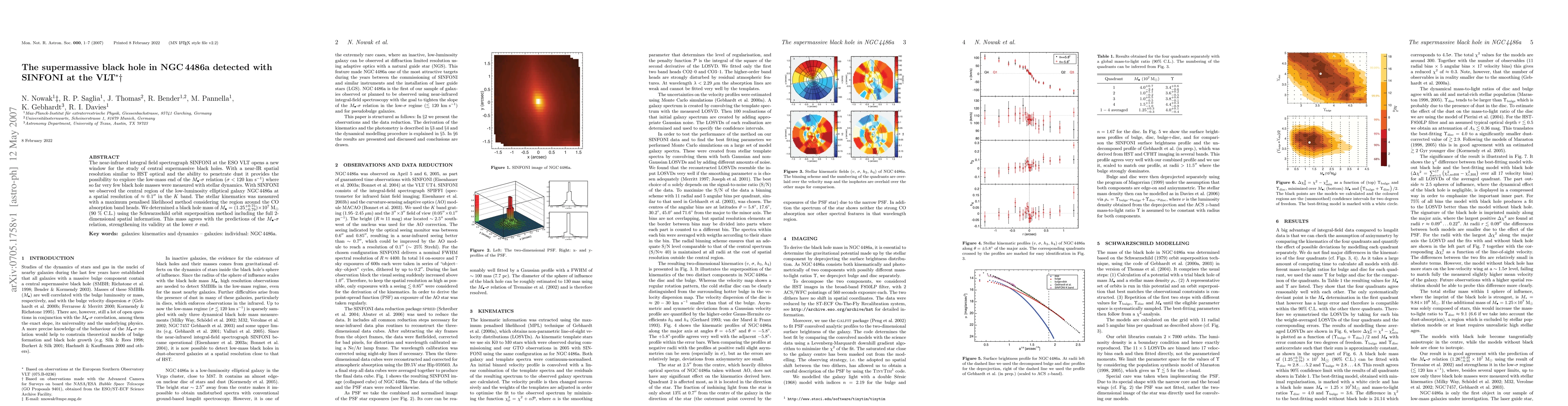 The SINFONI spectrograph at the VLT has detected a supermassive black hole in NGC4486a with a mass of 1.25 x 10^7 solar masses, confirming the M-sigma relation even at lower stellar velocities. This near-infrared observation provides valuable data on black holes in low-mass galaxies.