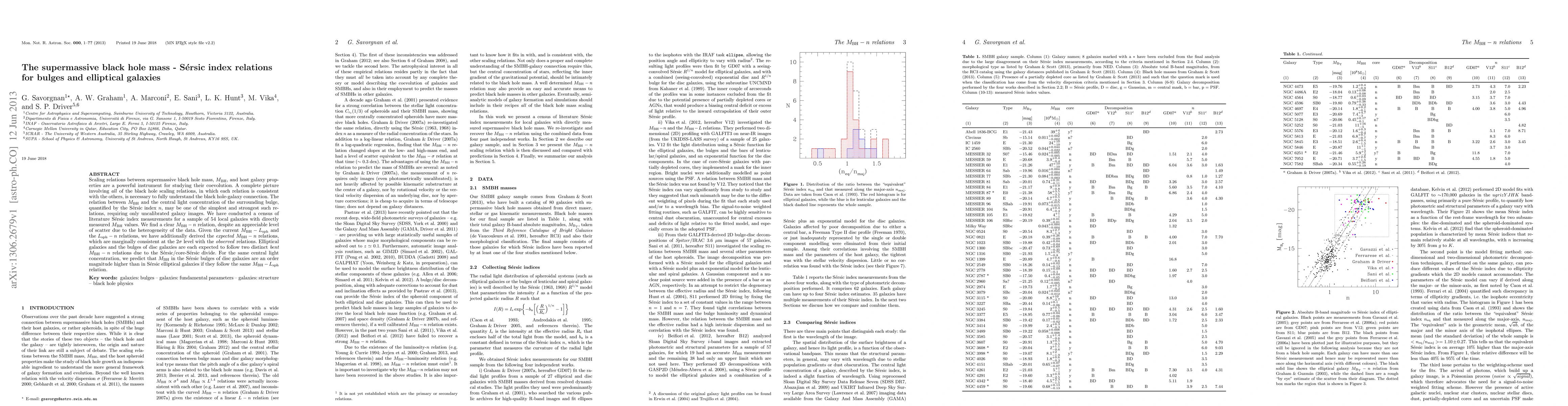 This research investigates the scaling relation between supermassive black hole mass (M_BH) and the central light concentration of host galaxy bulges, quantified by the S\'ersic index (n). The study finds a clear M_BH - n relation in a sample of 54 local galaxies, suggesting a coevolutionary link between black holes and their host galaxies, despite data scatter.
