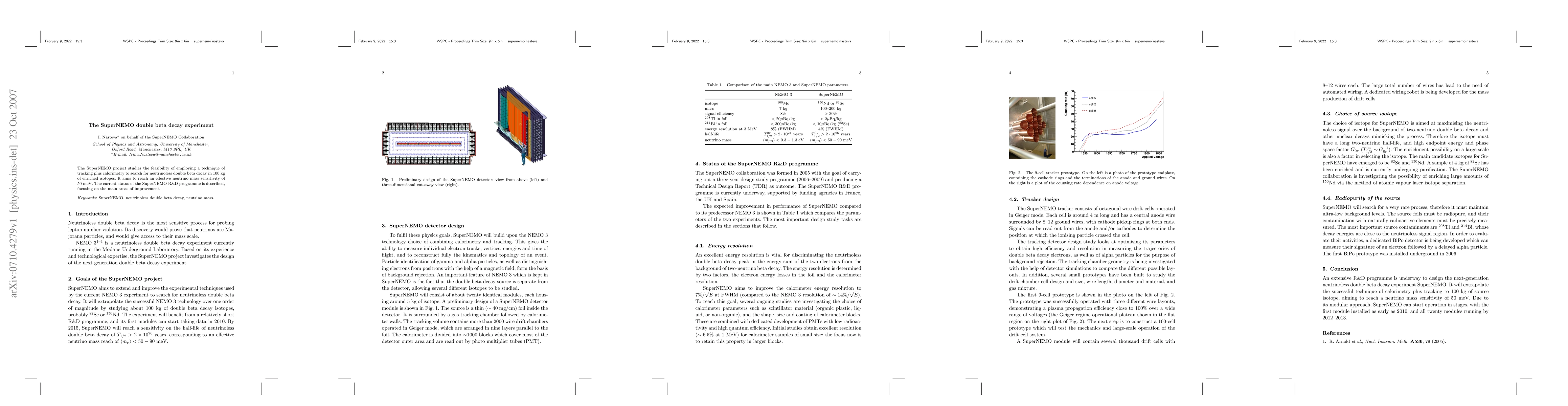 The SuperNEMO experiment aims to detect neutrinoless double beta decay using a tracking plus calorimetry technique with 100 kg of enriched isotopes, targeting a sensitivity of 50 meV for effective neutrino mass. The paper details the current status and key improvements in the research and development program.