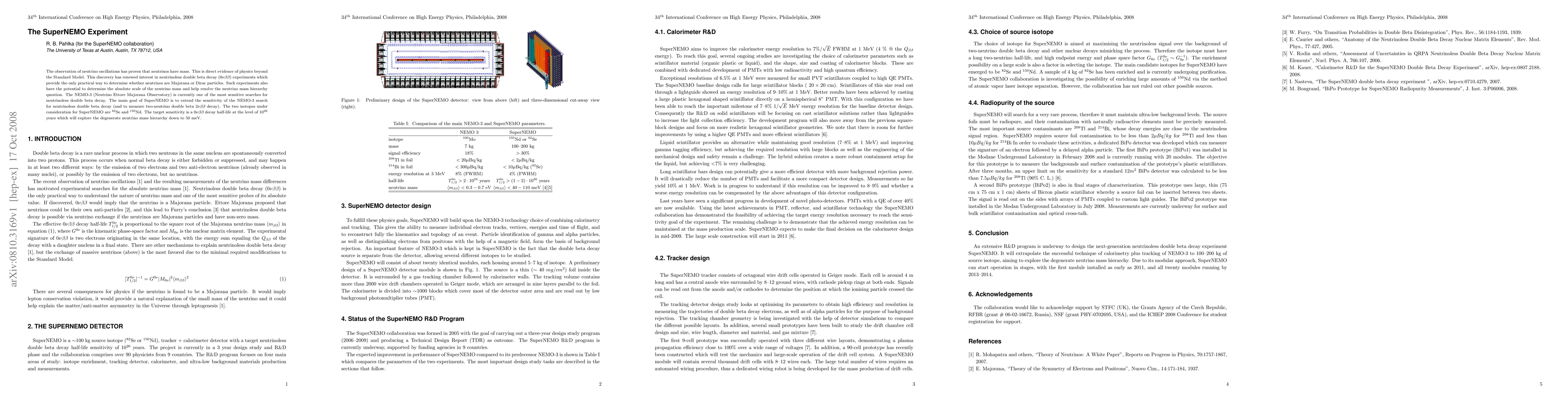 The SuperNEMO Experiment aims to detect neutrinoless double beta decay with a target sensitivity of 10^26 years, aiming to explore the degenerate neutrino mass hierarchy down to 50 meV.