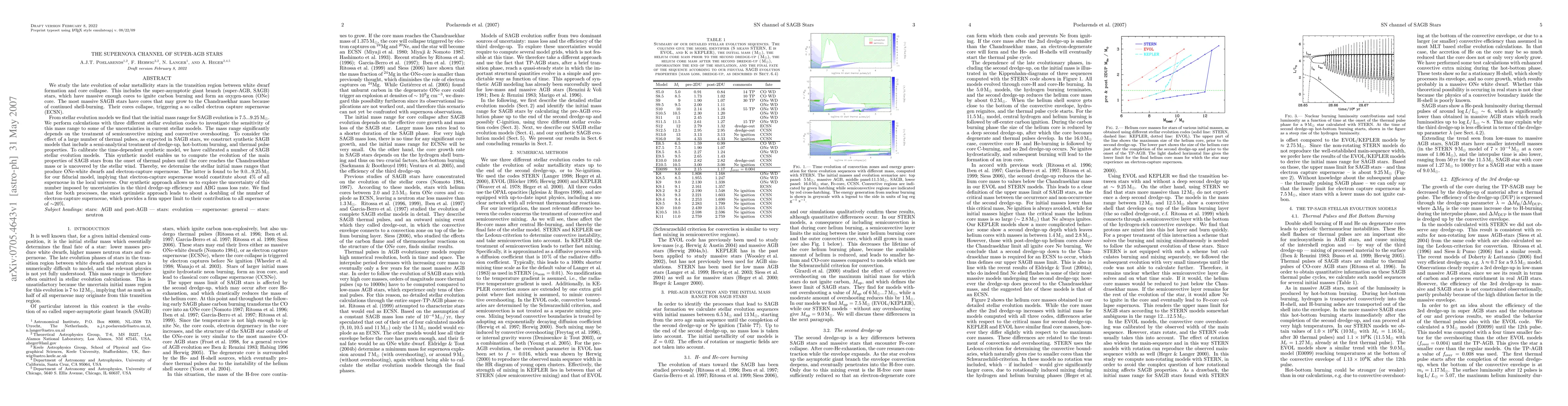This paper investigates the late evolution of super-asymptotic giant branch (SAGB) stars, focusing on the mass range that leads to electron capture supernovae (ECSN). The study finds that the initial mass range for SAGB stars resulting in ECSN is 9.0–9.25 solar masses, constituting about 4% of all supernovae in the local universe.