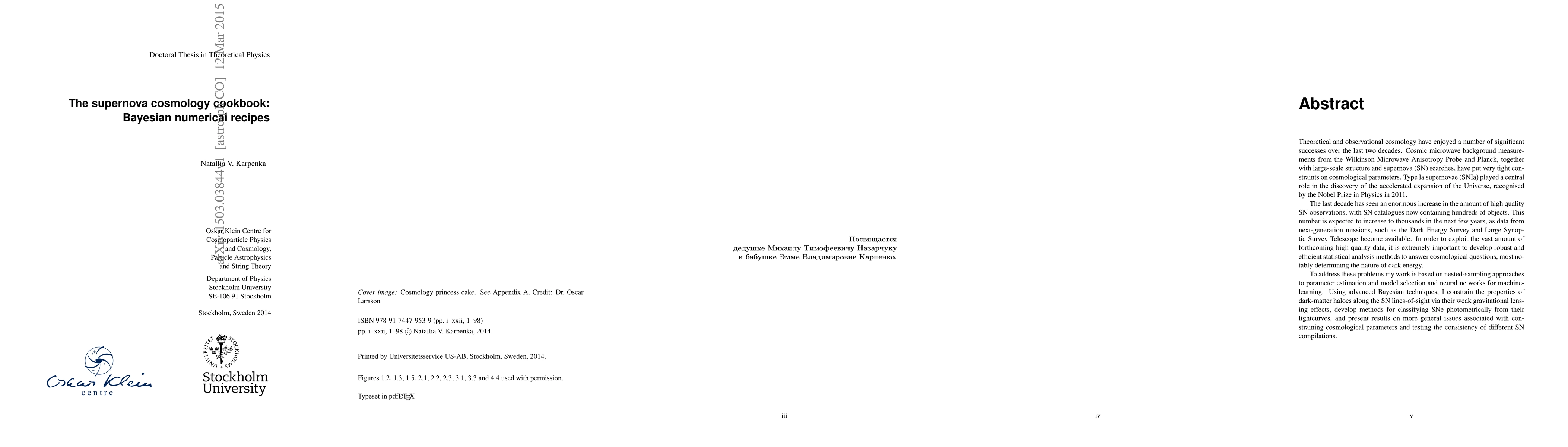 Theoretical and observational cosmology have enjoyed a number of significant successes over the last two decades. Cosmic microwave background measurements from the Wilkinson Microwave Anisotropy Probe and Planck, together with large-scale structure and supernova (SN) searches, have put very tight constraints on cosmological parameters. Type Ia supernovae (SNIa) played a central role in the discovery of the accelerated expansion of the Universe, recognised by the Nobel Prize in Physics in 2011. The last decade has seen an enormous increase in the amount of high quality SN observations, with SN catalogues now containing hundreds of objects. This number is expected to increase to thousands in the next few years, as data from next-generation missions, such as the Dark Energy Survey and Large Synoptic Survey Telescope become available. In order to exploit the vast amount of forthcoming high quality data, it is extremely important to develop robust and efficient statistical analysis methods to answer cosmological questions, most notably determining the nature of dark energy. To address these problems my work is based on nested-sampling approaches to parameter estimation and model selection and neural networks for machine-learning. Using advanced Bayesian techniques, I constrain the properties of dark-matter haloes along the SN lines-of-sight via their weak gravitational lensing effects, develop methods for classifying SNe photometrically from their lightcurves, and present results on more general issues associated with constraining cosmological parameters and testing the consistency of different SN compilations.