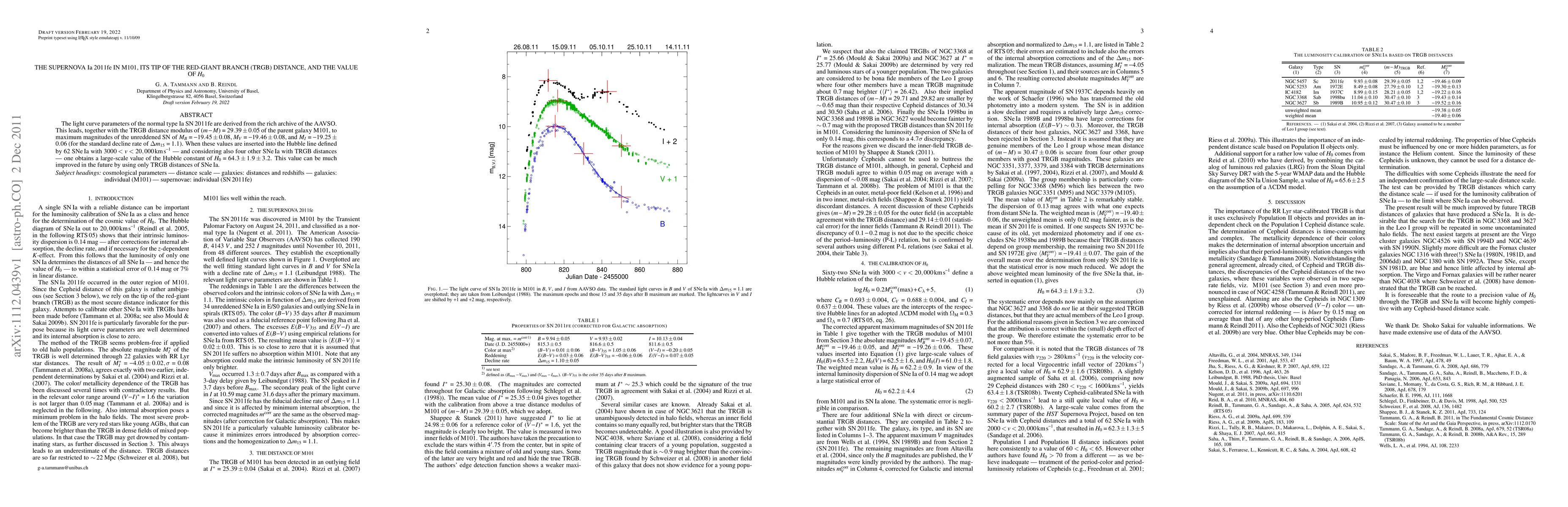 The light curve parameters of the normal type Ia SN2011fe are derived from the rich archive of the AAVSO. This leads, together with the TRGB distance modulus of (m-M) = 29.39 +/- 0.05 of the parent galaxy M101, to maximum magnitudes of the unreddened SN of M_B = -19.45 +/- 0.08, M_V = -19.46 +/- 0.08, and M_I = -19.25 +/- 0.06 (for the standard decline rate of Delta m_15 = 1.1). When these values are inserted into the Hubble line defined by 62 SNe Ia with 3000 < v < 20,000 km/s - and considering also four other SNe Ia with TRGB distances - one obtains a large-scale value of the Hubble constant of H_0 = 64.3 +/- 1.9 +/- 3.2. This value can be much improved in the future by using only TRGB distances of SNe Ia.