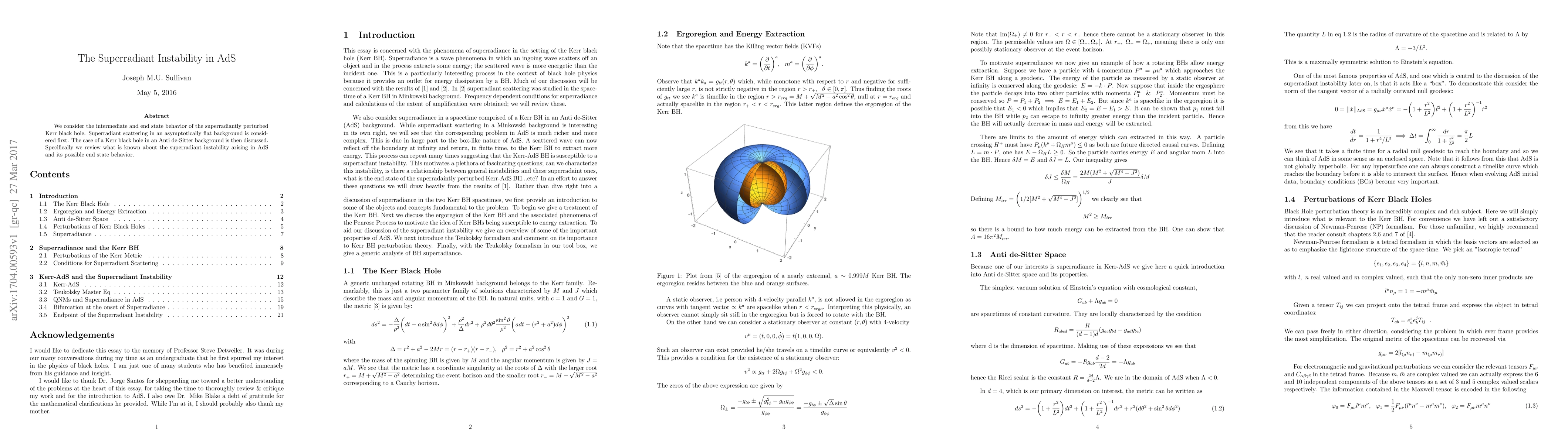 We consider the intermediate and end state behavior of the superradiantly perturbed Kerr black hole. Superradiant scattering in an asymptotically flat background is considered first. The case of a Kerr black hole in an Anti de-Sitter background is then discussed. Specifically we review what is known about the superradiant instability arising in AdS and its possible end state behavior.