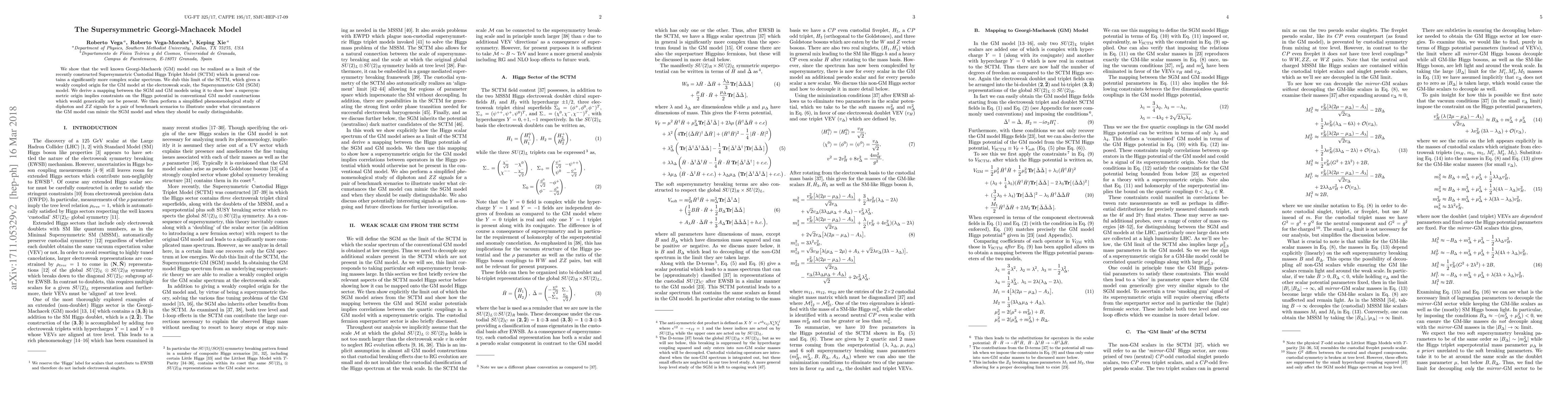 The Supersymmetric Georgi-Machacek Model demonstrates a supersymmetric limit of the Supersymmetric Custodial Higgs Triplet Model, providing a weakly coupled origin for the Georgi-Machacek model at the electroweak scale. The study also highlights constraints on the Higgs potential and conducts a phenomenological analysis of diphoton and ZZ signals to distinguish between the GM and SGM models.