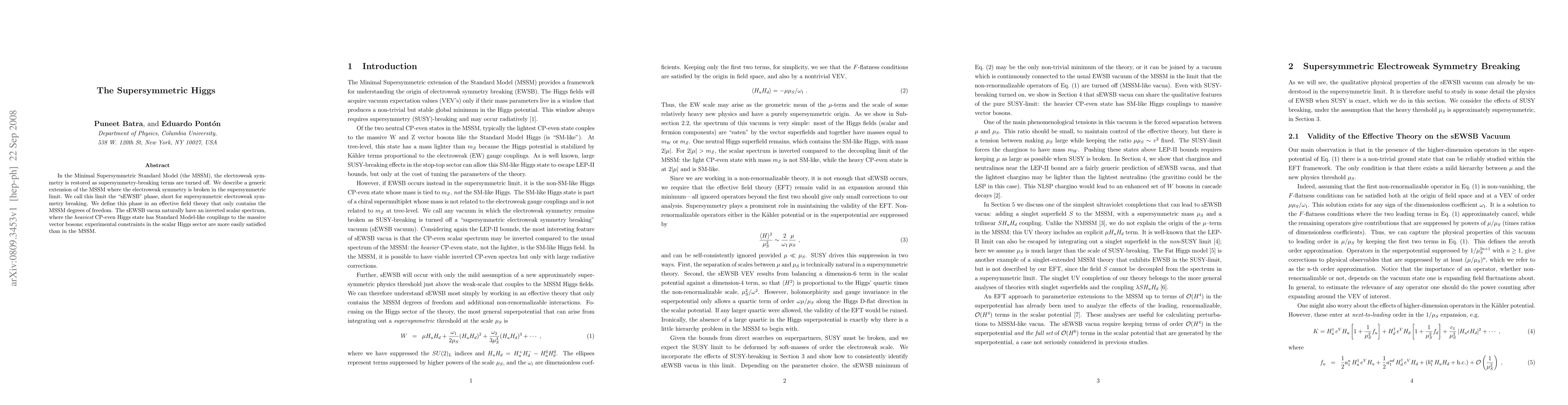 In the Minimal Supersymmetric Standard Model (the MSSM), the electroweak symmetry is restored as supersymmetry-breaking terms are turned off. We describe a generic extension of the MSSM where the electroweak symmetry is broken in the supersymmetric limit. We call this limit the "sEWSB" phase, short for supersymmetric electroweak symmetry breaking. We define this phase in an effective field theory that only contains the MSSM degrees of freedom. The sEWSB vacua naturally have an inverted scalar spectrum, where the heaviest CP-even Higgs state has Standard Model-like couplings to the massive vector bosons; experimental constraints in the scalar Higgs sector are more easily satisfied than in the MSSM.