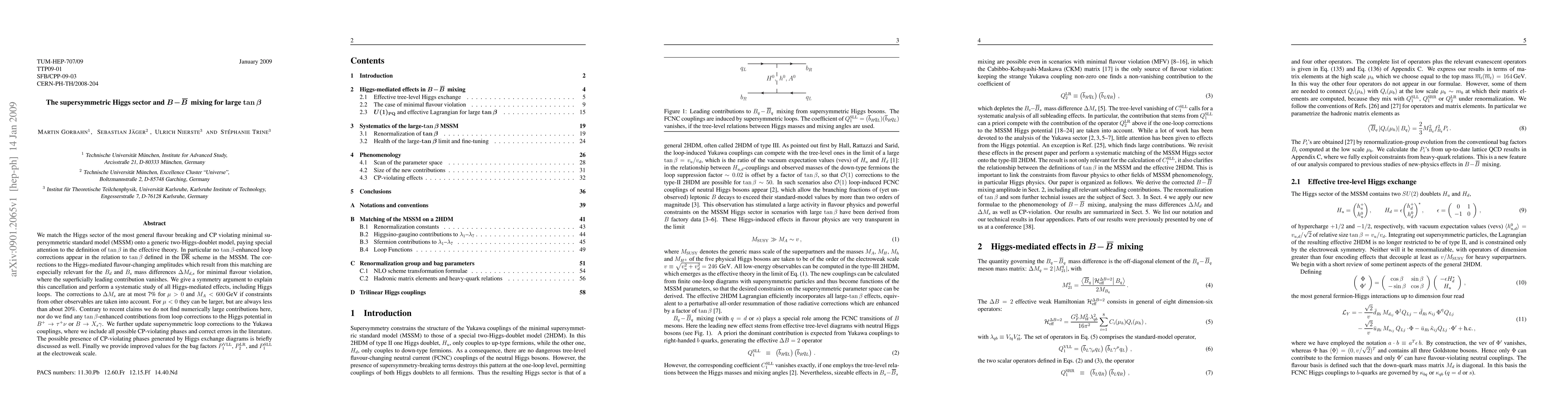 This paper matches the Higgs sector of the MSSM to a generic two-Higgs-doublet model, focusing on tan beta definitions, and finds minimal contributions to B-Bbar mixing for large tan beta, with corrections to dM_s at most 7% for certain parameter ranges. The study also corrects previous errors in supersymmetric loop corrections to Yukawa couplings and discusses potential CP-violating phases.