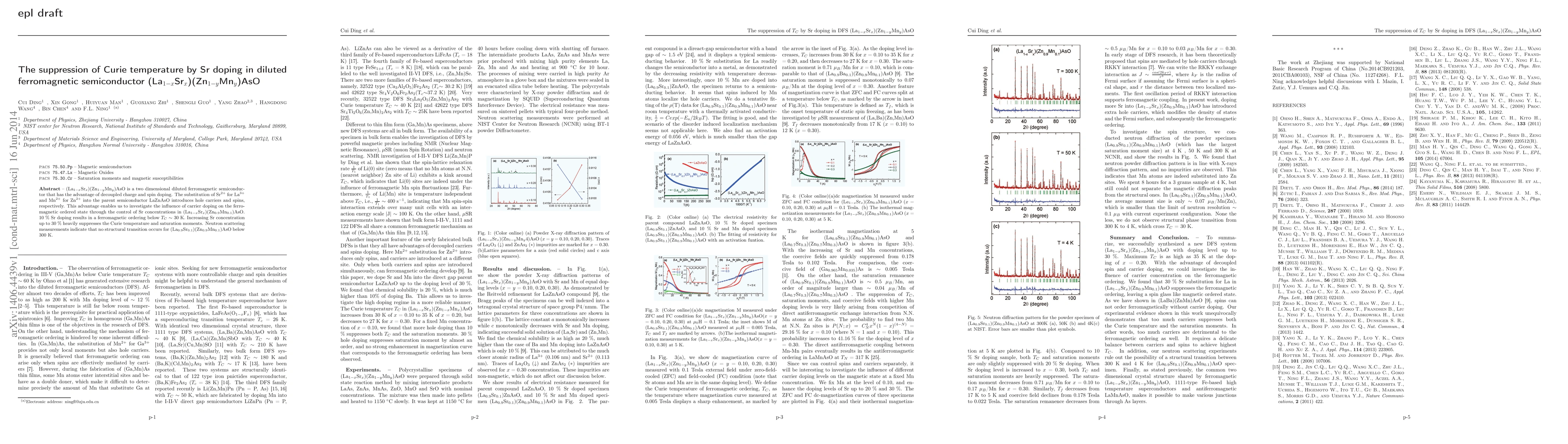 (La1-xSrx)(Zn1-yMny)AsO is a two dimensional diluted ferromagnetic semiconductor that has the advantage of decoupled charge and spin doping. The substitution of Sr2+ for La3+ and Mn2+ for Zn2+ into the parent semiconductor LaZnAsO introduces hole carriers and spins, respectively. This advantage enables us to investigate the influence of carrier doping on the ferromagnetic ordered state through the control of Sr concentrations in (La1-xSrx)(Zn0.9Mn0.1)AsO. 10 % Sr doping results in a ferromagnetic ordering below TC ~ 30 K. Increasing Sr concentration up to 30 % heavily suppresses the Curie temperature and saturation moments. Neutron scattering measurements indicate that no structural transition occurs for (La0.9Sr0.1)(Zn0.9Mn0.1)AsO below 300 K.