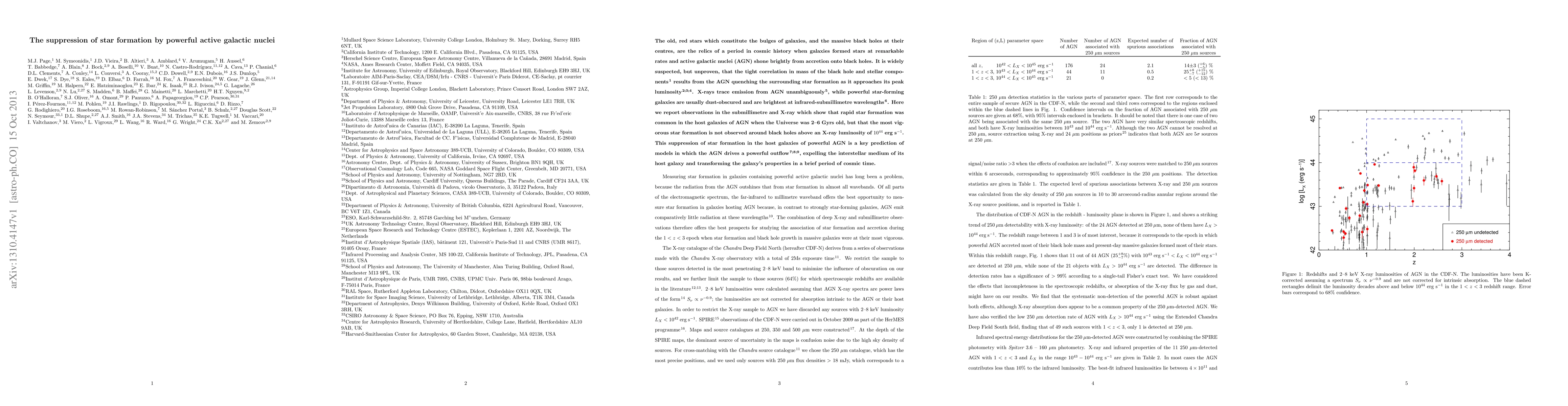 This paper reports observations that reveal vigorous star formation in galaxies hosting active galactic nuclei (AGN) when the Universe was 2-6 Gyrs old, but finds a suppression of star formation in galaxies with AGN exceeding an X-ray luminosity of 10^44 erg/s, supporting models where AGN-driven outflows quench star formation.
