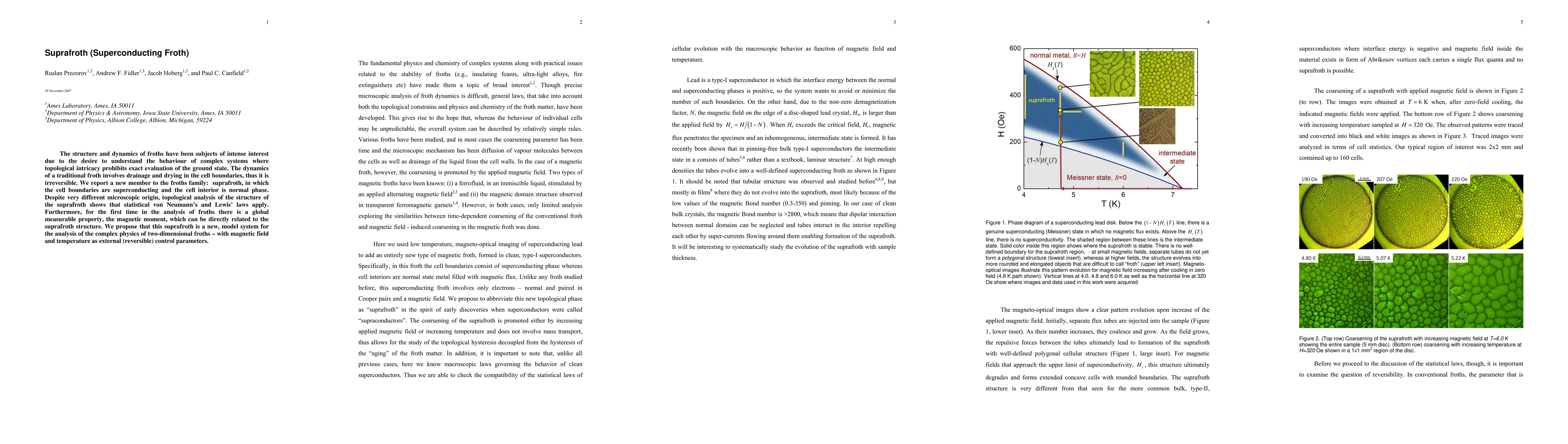 The research introduces 'suprafroth', a novel froth variant where cell boundaries are superconducting and interiors remain normal. Despite different origins, suprafroth obeys statistical von Neumann and Lewis laws, and its magnetic moment can be linked to its structure, offering a new model for studying complex 2D froth physics.
