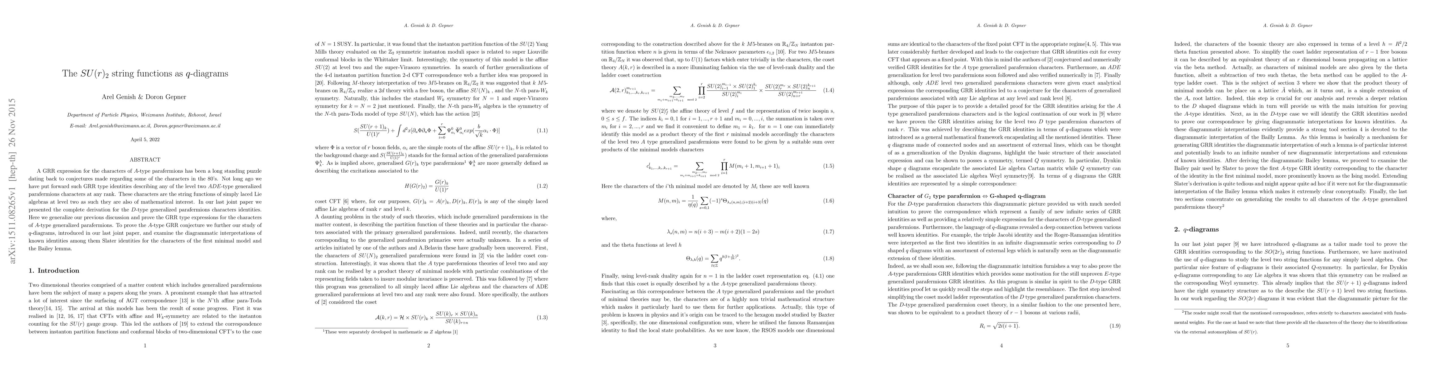 A GRR expression for the characters of $A$-type parafermions has been a long standing puzzle dating back to conjectures made regarding some of the characters in the 80's. Not long ago we have put forward such GRR type identities describing any of the level two $ADE$-type generalized parafermions characters at any rank. These characters are the string functions of simply laced Lie algebras at level two as such they are also of mathematical interest. In our last joint paper we presented the complete derivation for the $D$-type generalized parafermions characters identities. Here we generalize our previous discussion and prove the GRR type expressions for the characters of $A$-type generalized parafermions. To prove the $A$-type GRR conjecture we further our study of $q$-diagrams, introduced in our last joint paper, and examine the diagrammatic interpretations of known identities among them Slater identities for the characters of the first minimal model and the Bailey lemma.