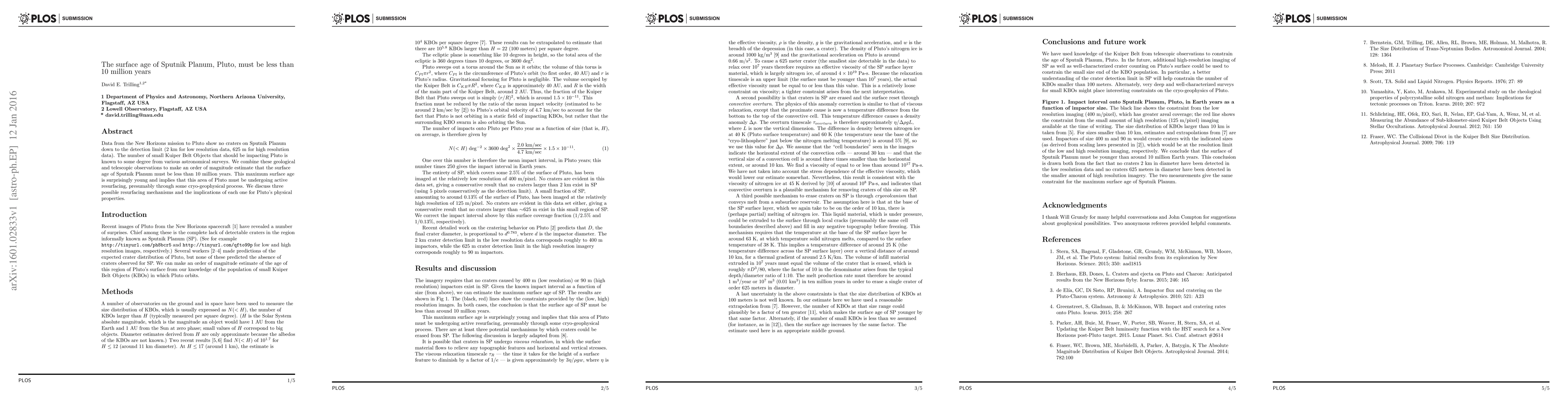 The New Horizons mission reveals that Sputnik Planum on Pluto has no detectable craters, suggesting its surface is less than 10 million years old, indicating active resurfacing likely driven by cryo-geophysical processes. Three potential mechanisms for this resurfacing are discussed, highlighting their implications for Pluto's physical properties.