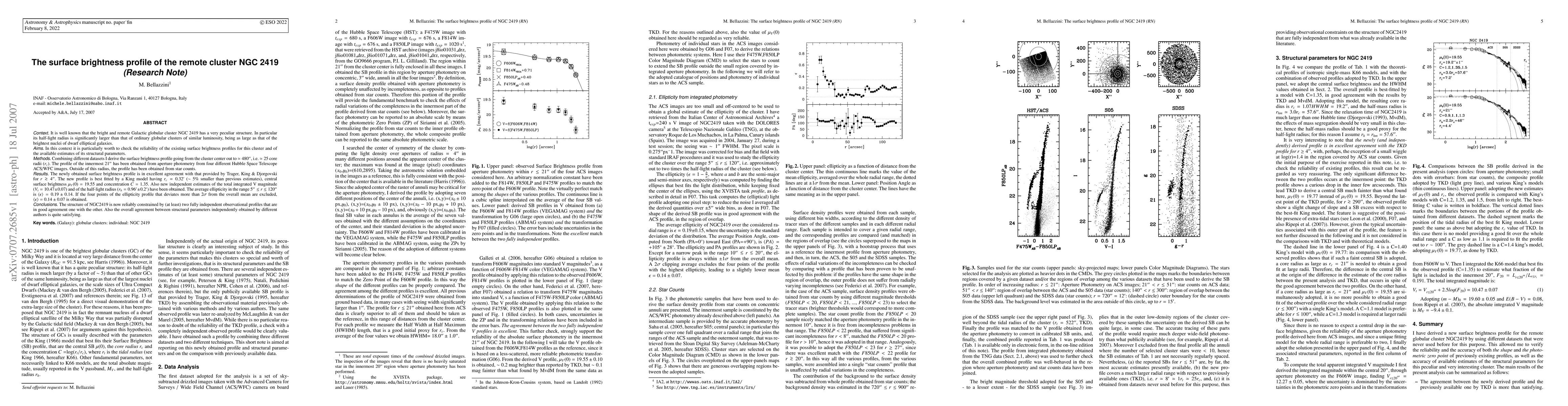 A study confirms the unusual surface brightness profile of galaxy cluster NGC 2419, with a half-light radius comparable to brightest dwarf elliptical galaxies, and provides new independent estimates of its structural parameters in excellent agreement.