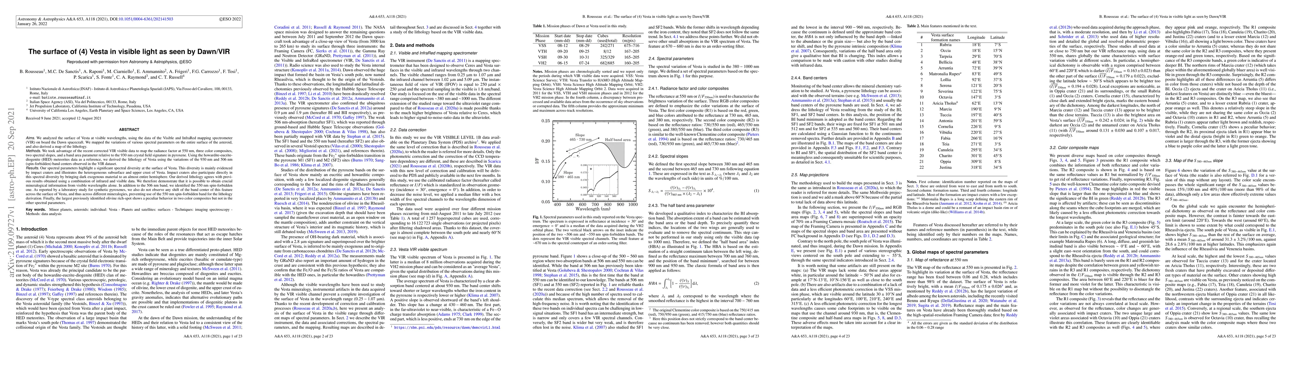This study analyzed Vesta's surface using Dawn/VIR's visible light data, revealing significant spectral diversity mainly due to impact craters. The derived lithology, consistent with previous results, demonstrates that visible wavelengths alone can provide crucial mineralogical information.