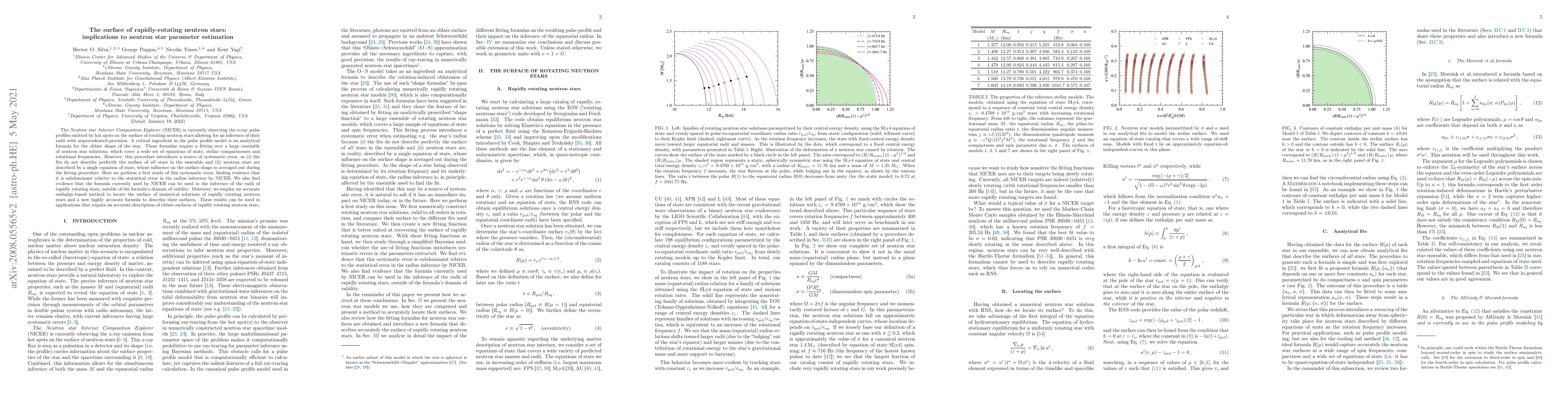 The Neutron star Interior Composition Explorer (NICER) is currently observing the x-ray pulse profiles emitted by hot spots on the surface of rotating neutron stars allowing for an inference of their radii with unprecedented precision. A critical ingredient in the pulse profile model is an analytical formula for the oblate shape of the star. These formulas require a fitting over a large ensemble of neutron star solutions, which cover a wide set of equations of state, stellar compactnesses and rotational frequencies. However, this procedure introduces a source of systematic error, as (i) the fits do not describe perfectly the surface of all stars in the ensemble and (ii) neutron stars are described by a single equation of state, whose influence on the surface shape is averaged out during the fitting procedure. Here we perform a first study of this systematic error, finding evidence that it is subdominant relative to the statistical error in the radius inference by NICER. We also find evidence that the formula currently used by NICER can be used in the inference of the radii of rapidly rotating stars, outside of the formula's domain of validity. Moreover, we employ an accurate enthalpy-based method to locate the surface of numerical solutions of rapidly rotating neutron stars and a new highly accurate formula to describe their surfaces. These results can be used in applications that require an accurate description of oblate surfaces of rapidly rotating neutron stars.