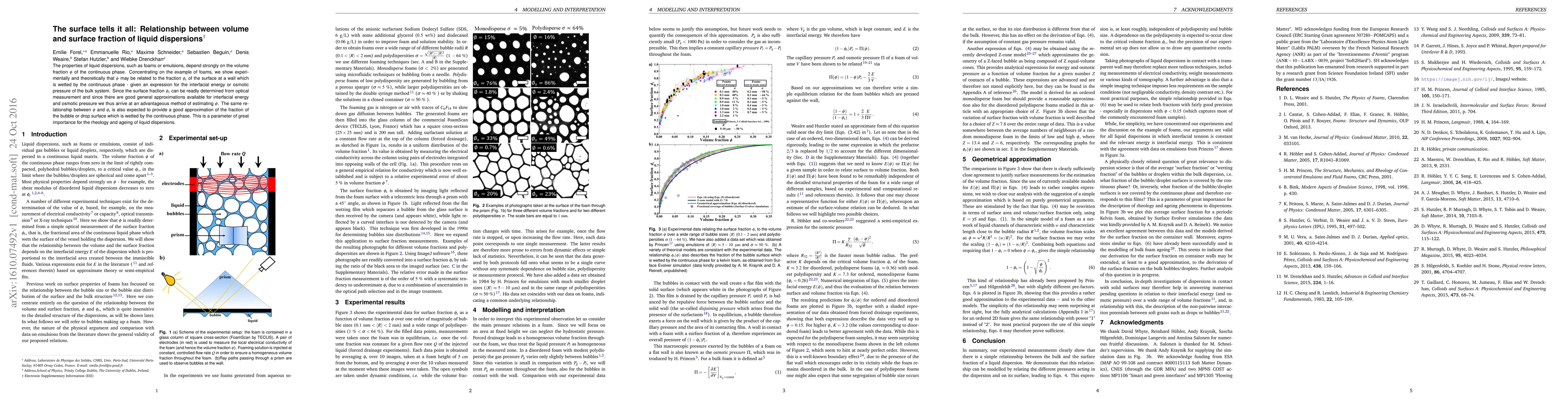 The properties of liquid dispersions, such as foams or emulsions, depend strongly on the volume fraction $\phi$ of the continuous phase. Concentrating on the example of foams, we show experimentally and theoretically that $\phi$ may be related to the fraction $\phi_s$ of the surface at a wall which is wetted by the continuous phase - given an expression for the interfacial energy or osmotic pressure of the bulk system. Since the surface fraction $\phi_s$ can be readly determined from optical measurement and since there are good general approximations available for interfacial energy and osmotic pressure we thus arrive at an advantageous method of estimating $\phi$. The same relationship between $\phi$ and $\phi_s$ is also expected to provide a good approximation of the fraction of the bubble or drop surface which is wetted by the continuous phase. This is a parameter of great importance for the rheology and ageing of liquid dispersions.