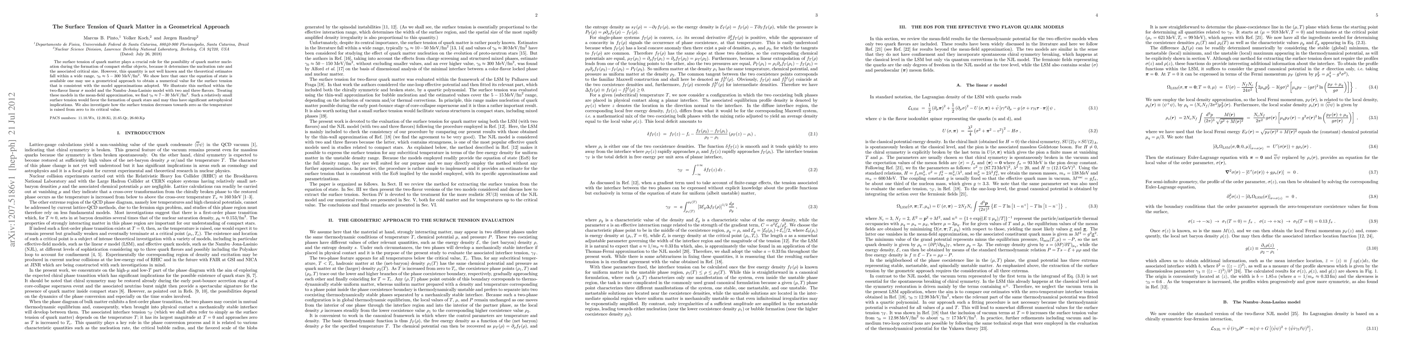 Researchers used a geometrical approach to estimate quark matter surface tension, finding values of 7-30 MeV/fm^2 that favor the formation of quark stars with significant astrophysical implications.