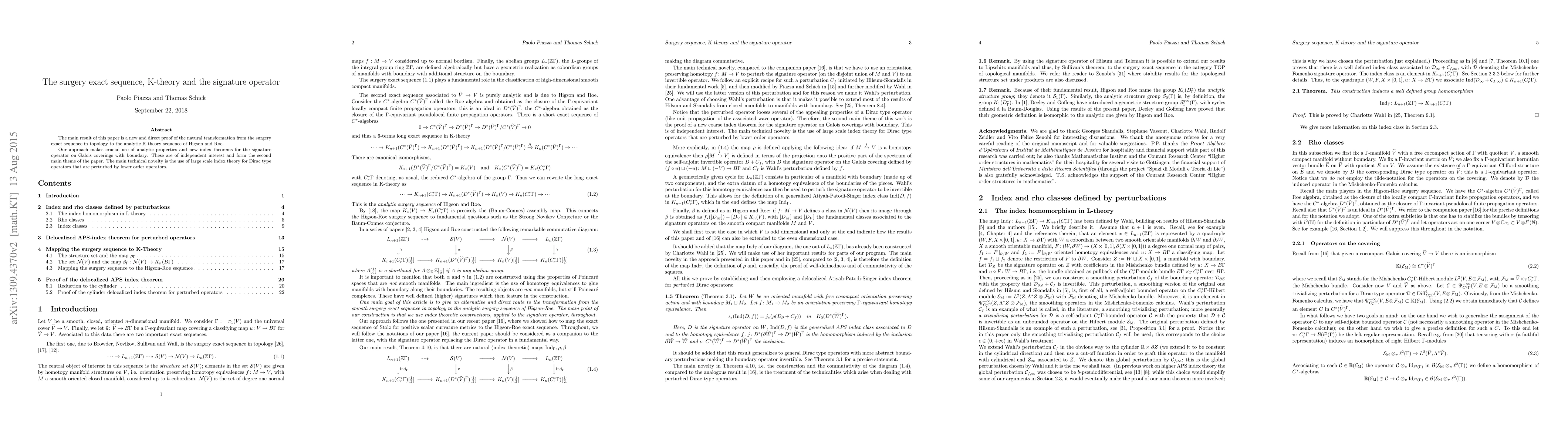 This paper provides a novel proof connecting the surgery exact sequence in topology with the analytic K-theory sequence, employing new index theorems for the signature operator on Galois coverings with boundary. The study introduces significant advancements in large scale index theory for perturbed Dirac operators.
