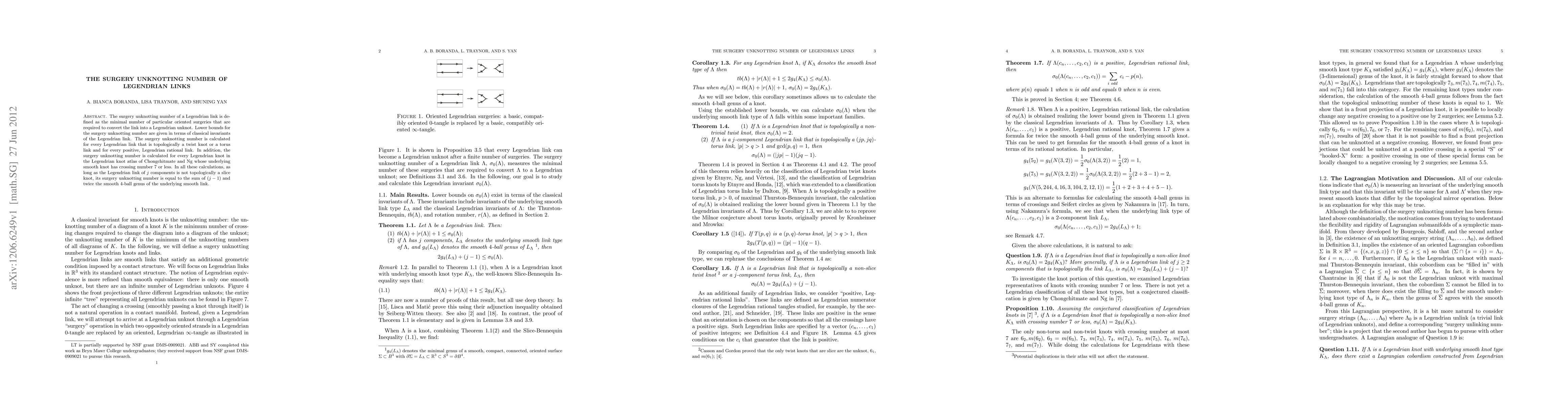 The work is novel in its systematic approach to calculating the surgery unknotting number for various Legendrian link families and in linking these calculations to classical knot invariants and smooth 4-ball genus.
