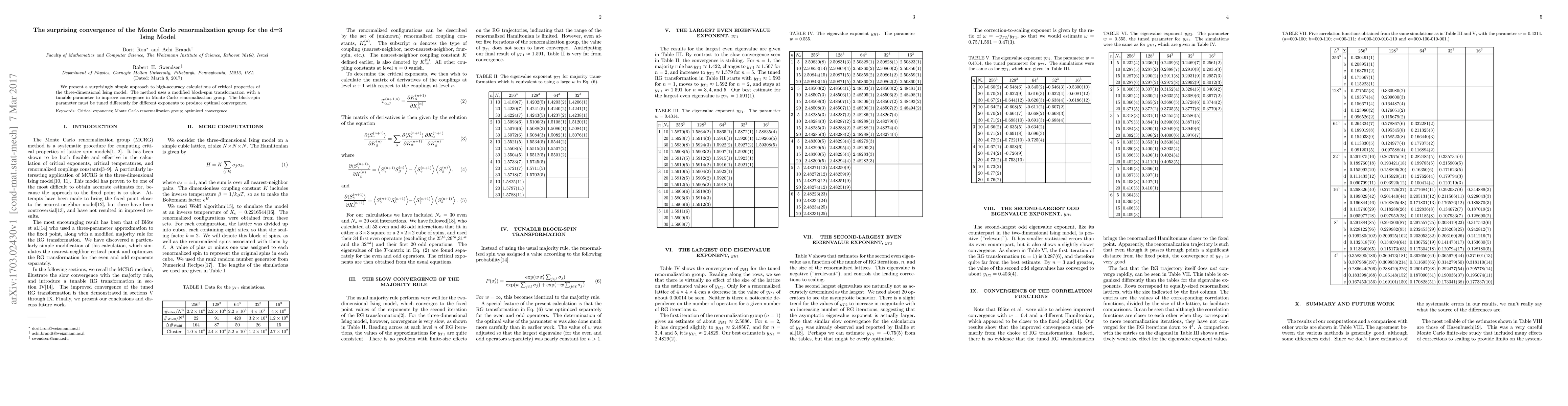 Summary: This paper introduces a refined Monte Carlo renormalization group technique for high-accuracy calculations of the critical properties of the 3D Ising model, employing a tunable block-spin transformation to enhance convergence, with optimal tuning varying for different critical exponents.
