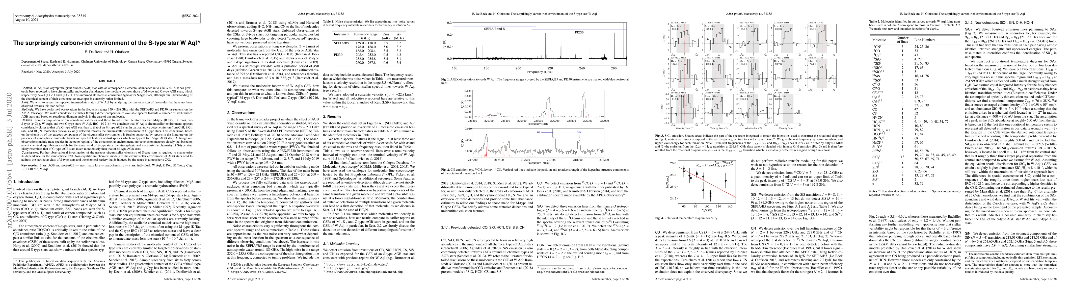W Aql is an asymptotic giant branch (AGB) star with an atmospheric elemental abundance ratio C/O$\approx$0.98 and reported circumstellar molecular abundances intermediate between those of M-type (C/O$<$1) and C-type (C/O$>$1) AGB stars. This intermediate status is considered typical for S-type stars, although our understanding of the chemical content of their circumstellar envelopes (CSEs) is currently rather limited. We performed observations in the frequency range 159-268 GHz with the APEX telescope and make abundance estimates through comparison to available spectra towards some well-studied AGB stars and based on rotational diagram analysis in the case of SiC2. We conclude that W Aql's CSE appears considerably closer to that of a C-type AGB star than to that of an M-type AGB star. In particular, we detect emission from C2H, SiC2, SiN, and HC3N, molecules previously only detected towards the CSEs of C-type stars. This conclusion, based on the chemistry of the gaseous component of the CSE, is further supported by reports in the literature on the presence of atmospheric molecular bands and spectral features of dust species typical for C-type AGB stars. Although our observations mainly trace species in the outer regions of the CSE, our conclusion matches closely that based on recent chemical equilibrium models for the inner wind of S-type stars: the atmospheric and circumstellar chemistry of S-type stars likely resembles that of C-type AGB stars much more closely than that of M-type AGB stars. Further observational investigation of the gaseous circumstellar chemistry of S-type stars is required to characterise its dependence on the atmospheric C/O. Non-equilibrium chemical models of the CSEs of AGB stars need to address the particular class of S-type stars and the chemical variety that is induced by the range in atmospheric C/O.