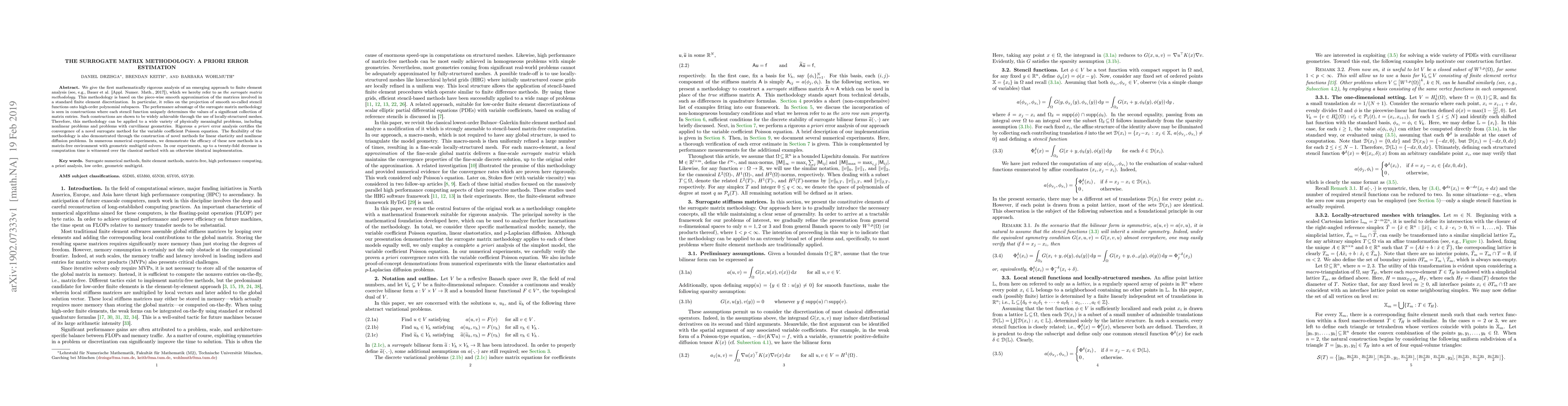We give the first mathematically rigorous analysis of an emerging approach to finite element analysis (see, e.g., Bauer et al. [Appl. Numer. Math., 2017]), which we hereby refer to as the surrogate matrix methodology. This methodology is based on the piece-wise smooth approximation of the matrices involved in a standard finite element discretization. In particular, it relies on the projection of smooth so-called stencil functions onto high-order polynomial subspaces. The performance advantage of the surrogate matrix methodology is seen in constructions where each stencil function uniquely determines the values of a significant collection of matrix entries. Such constructions are shown to be widely achievable through the use of locally-structured meshes. Therefore, this methodology can be applied to a wide variety of physically meaningful problems, including nonlinear problems and problems with curvilinear geometries. Rigorous a priori error analysis certifies the convergence of a novel surrogate method for the variable coefficient Poisson equation. The flexibility of the methodology is also demonstrated through the construction of novel methods for linear elasticity and nonlinear diffusion problems. In numerous numerical experiments, we demonstrate the efficacy of these new methods in a matrix-free environment with geometric multigrid solvers. In our experiments, up to a twenty-fold decrease in computation time is witnessed over the classical method with an otherwise identical implementation.