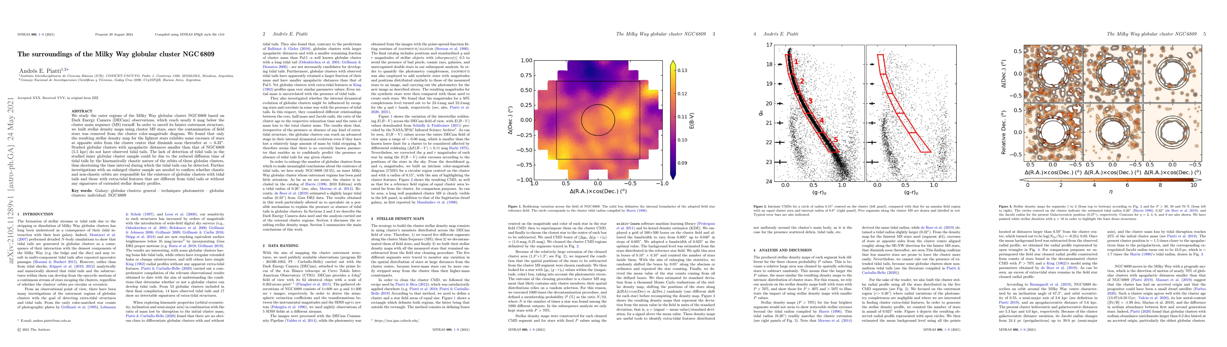 This study investigates the outer regions of the Milky Way globular cluster NGC 6809 using DECam observations, revealing faint stellar density excesses at opposite sides of the cluster. The absence of tidal tails in NGC 6809 and similar inner clusters suggests that chaotic orbits may reduce the diffusion time of tidal tails, though further research is needed to confirm this.