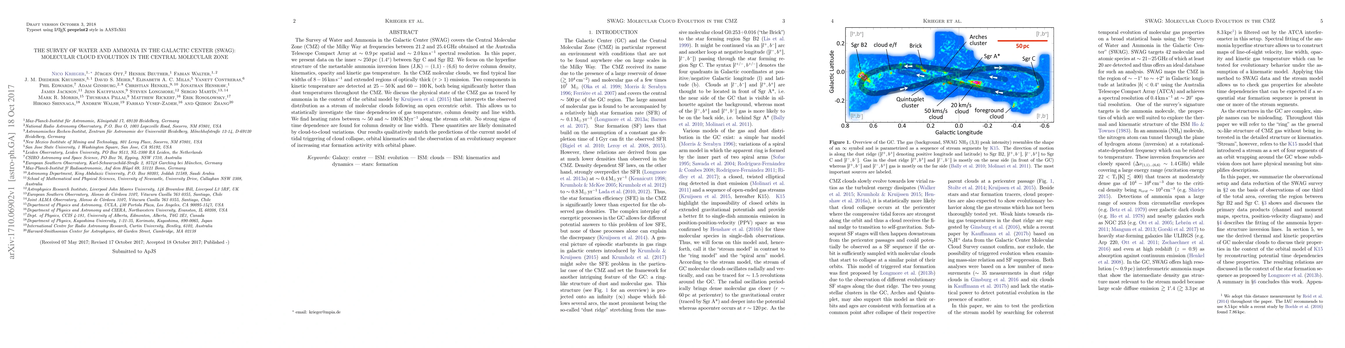 The Survey of Water and Ammonia in the Galactic Center (SWAG) covers the Central Molecular Zone (CMZ) of the Milky Way at frequencies between 21.2 and 25.4 GHz obtained at the Australia Telescope Compact Array at $\sim 0.9$ pc spatial and $\sim 2.0$ km s$^{-1}$ spectral resolution. In this paper, we present data on the inner $\sim 250$ pc ($1.4^\circ$) between Sgr C and Sgr B2. We focus on the hyperfine structure of the metastable ammonia inversion lines (J,K) = (1,1) - (6,6) to derive column density, kinematics, opacity and kinetic gas temperature. In the CMZ molecular clouds, we find typical line widths of $8-16$ km s$^{-1}$ and extended regions of optically thick ($\tau > 1$) emission. Two components in kinetic temperature are detected at $25-50$ K and $60-100$ K, both being significantly hotter than dust temperatures throughout the CMZ. We discuss the physical state of the CMZ gas as traced by ammonia in the context of the orbital model by Kruijssen et al. (2015) that interprets the observed distribution as a stream of molecular clouds following an open eccentric orbit. This allows us to statistically investigate the time dependencies of gas temperature, column density and line width. We find heating rates between $\sim 50$ and $\sim 100$ K Myr$^{-1}$ along the stream orbit. No strong signs of time dependence are found for column density or line width. These quantities are likely dominated by cloud-to-cloud variations. Our results qualitatively match the predictions of the current model of tidal triggering of cloud collapse, orbital kinematics and the observation of an evolutionary sequence of increasing star formation activity with orbital phase.
