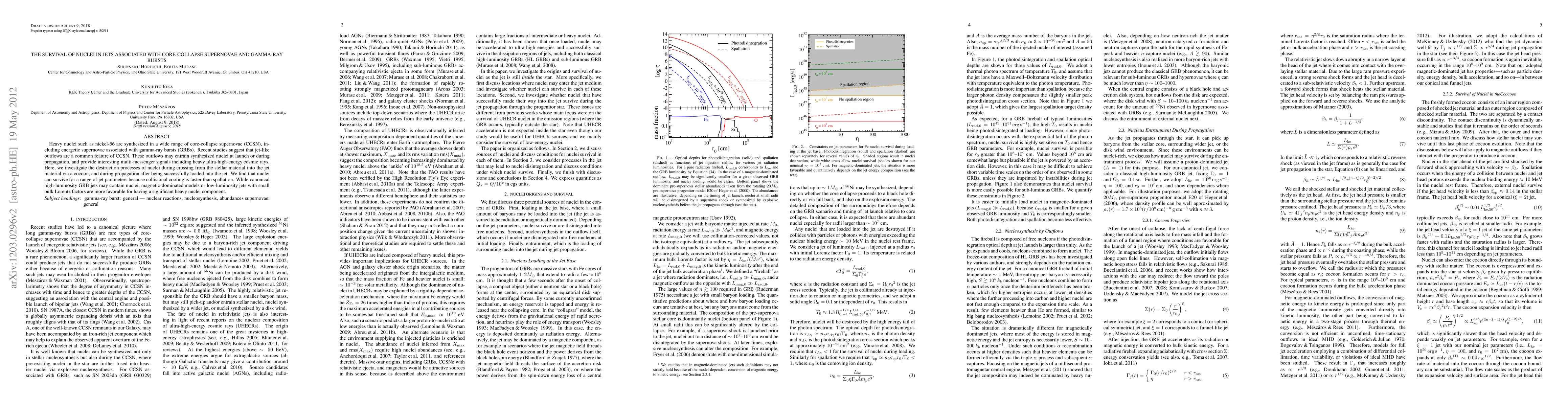 Nuclear nuclei can survive in jets from core-collapse supernovae under certain conditions, providing a potential source of heavy ultra-high energy cosmic rays. Jet parameters such as luminosity and Lorentz factor play a crucial role in determining the survival of these nuclei.