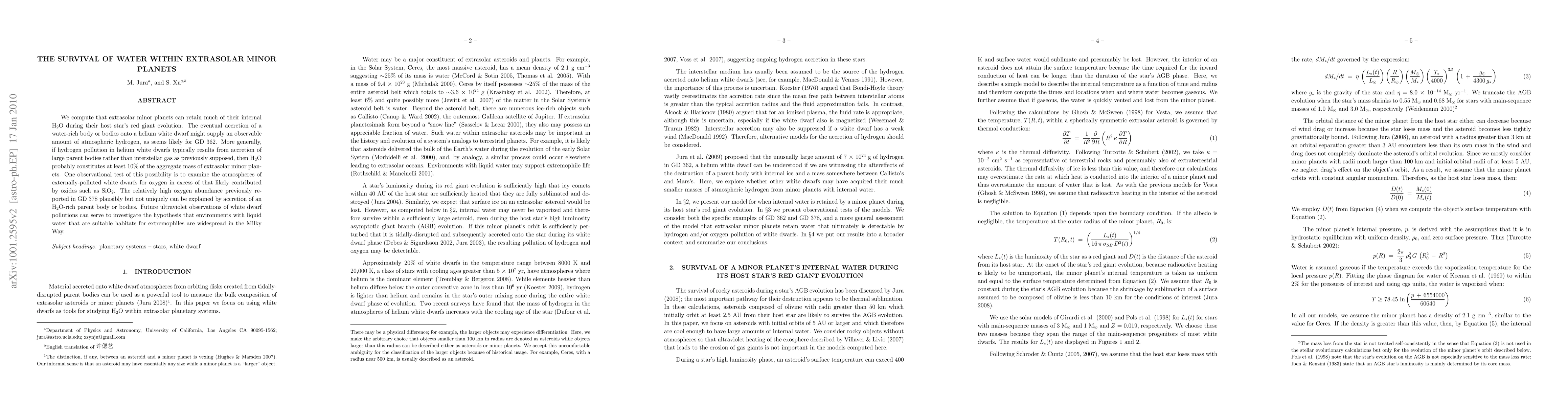We compute that extrasolar minor planets can retain much of their internal H_2O during their host star's red giant evolution. The eventual accretion of a water-rich body or bodies onto a helium white dwarf might supply an observable amount of atmospheric hydrogen, as seems likely for GD 362. More generally, if hydrogen pollution in helium white dwarfs typically results from accretion of large parent bodies rather than interstellar gas as previously supposed, then H_2O probably constitutes at least 10% of the aggregate mass of extrasolar minor planets. One observational test of this possibility is to examine the atmospheres of externally-polluted white dwarfs for oxygen in excess of that likely contributed by oxides such as SiO_2. The relatively high oxygen abundance previously reported in GD 378 plausibly but not uniquely can be explained by accretion of an H_2O-rich parent body or bodies. Future ultraviolet observations of white dwarf pollutions can serve to investigate the hypothesis that environments with liquid water that are suitable habitats for extremophiles are widespread in the Milky Way.