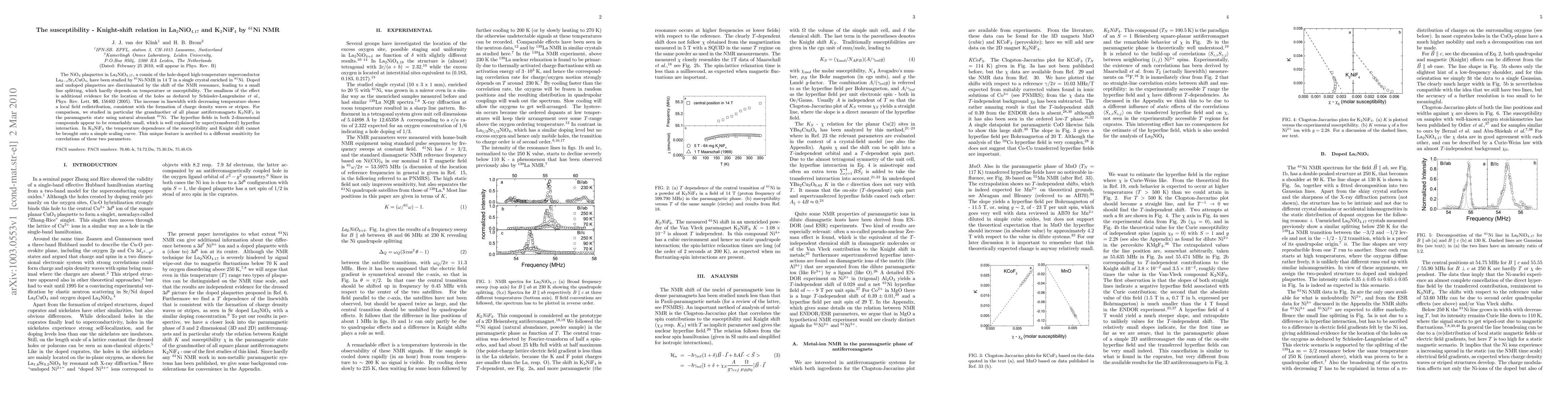 This research investigates the susceptibility-Knight shift relation in La2NiO4.17 and K2NiF4 using 61Ni NMR, revealing a small line splitting in La2NiO4.17 that supports hole localization. The study also finds a local field redistribution in La2NiO4.17, indicative of charge density waves or stripes, and notes remarkably small hyperfine fields in both compounds due to super(transferred) hyperfine interaction.