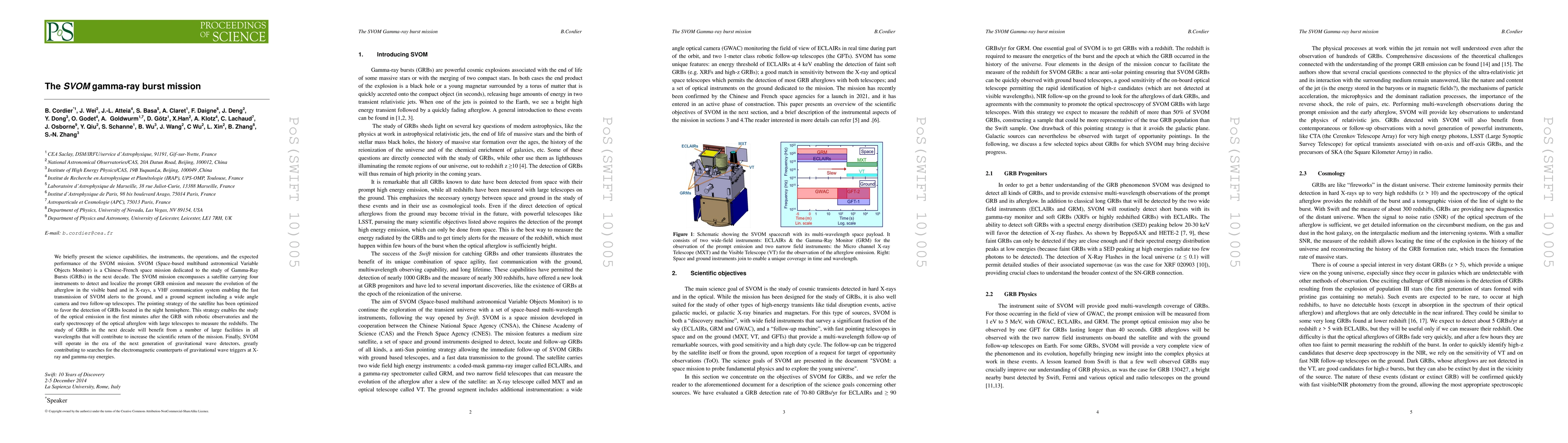 The SVOM gamma-ray burst mission aims to detect and study Gamma-Ray Bursts (GRBs) in the next decade, benefiting from a satellite with multiple instruments and partnerships with large telescopes, contributing to our understanding of these cosmic events.