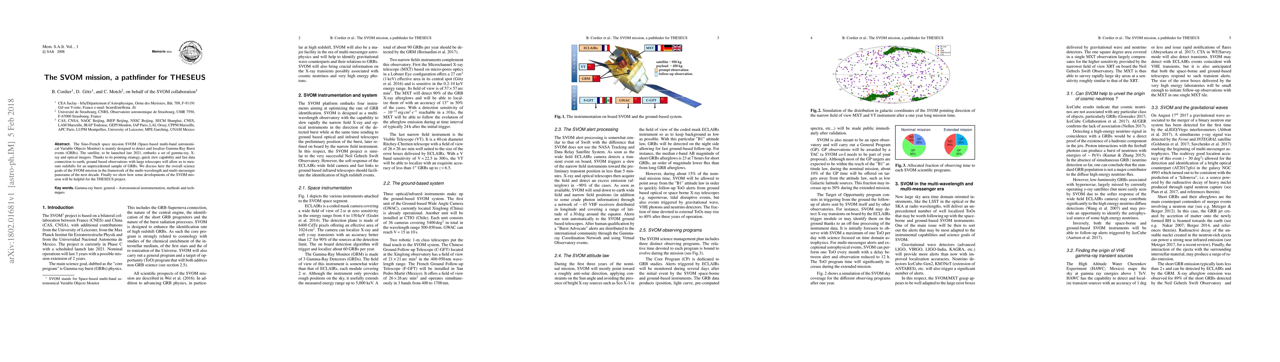 The SVOM mission, designed to detect and localize Gamma-Ray Bursts, will provide unprecedented redshift measurements for GRBs via its advanced pointing and data transmission capabilities. This mission sets the stage for the THESEUS project, leveraging its technological advancements.