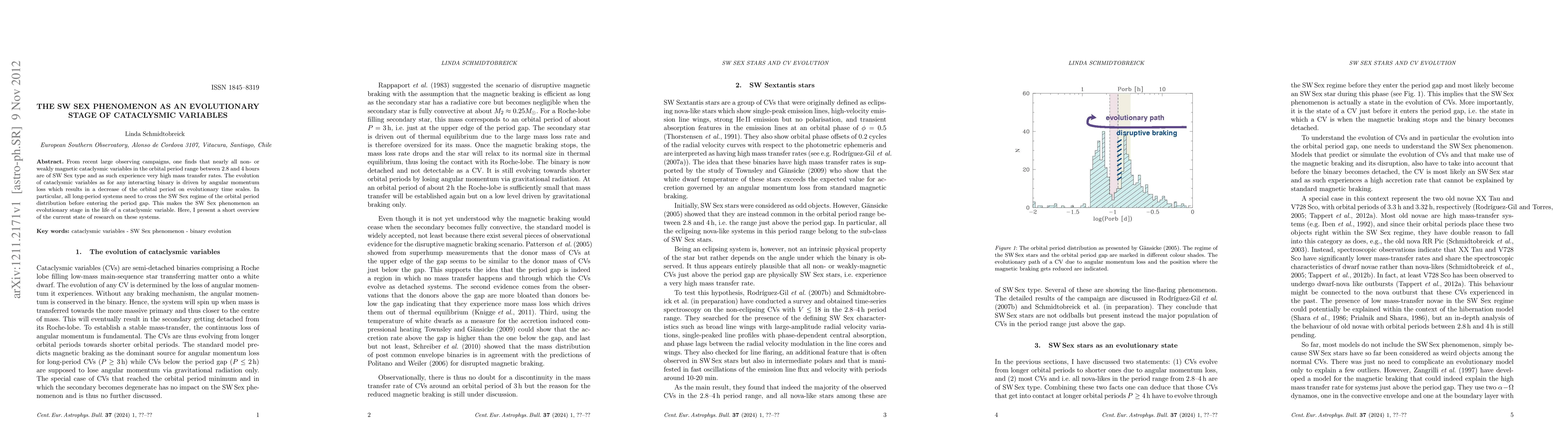 This paper discusses the SW Sex phenomenon as a critical evolutionary stage for non-magnetic cataclysmic variables, characterized by high mass transfer rates and orbital periods between 2.8 and 4 hours. It highlights that these systems must traverse the SW Sex regime before entering the period gap, underscoring its significance in the life cycle of cataclysmic variables.